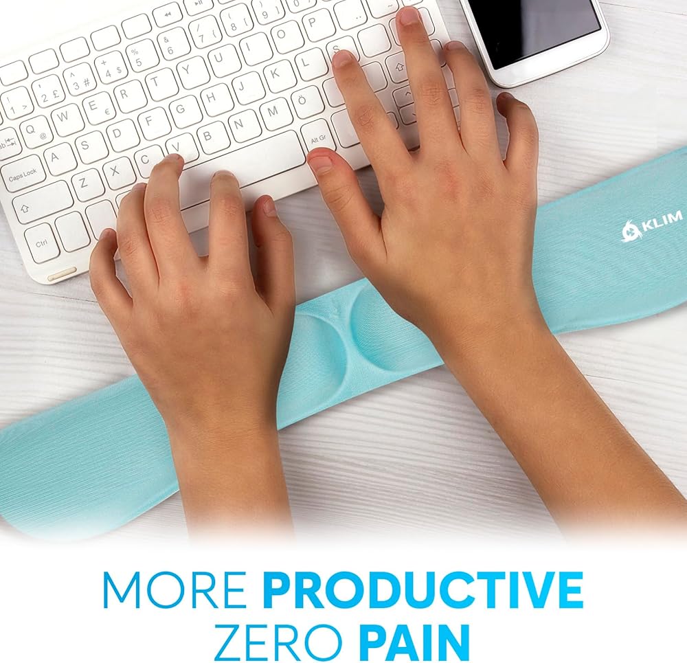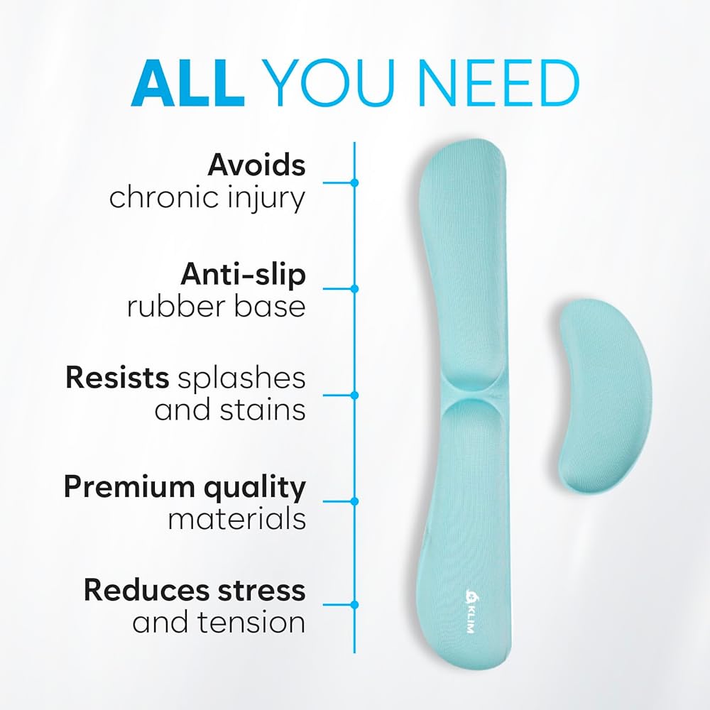 KLIM Mouse & Keyboard Wrist Rest Set - Silky Gel Memory Foam - Ergonomic Wrist Rest for Computer Keyboard, Wrist Pad for Keyboard + Wrist Rest for Mouse Gaming and Office - Pain Relief - Light Blue