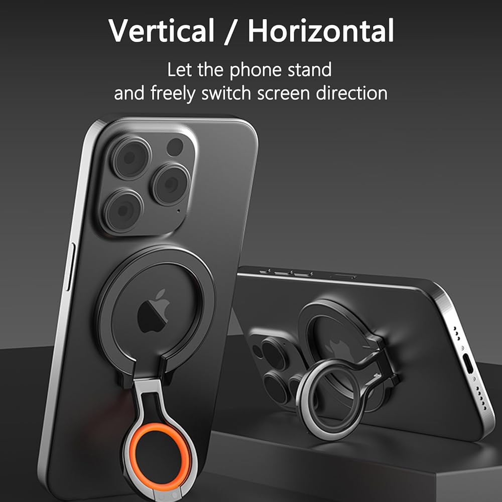 【Multi-Angle Adjustable】: This magnetic phone grip adopts a Dual-joint desig with a 360° rotatable base and 180° folding ring. Multi-angle adjustment provide flexible & comfortable hand grab and excellent viewing angle without hurting your fingers. It's perfect to use as a phone stand when watching videos, taking selfies, texting, or just keeping your phone on the desk.