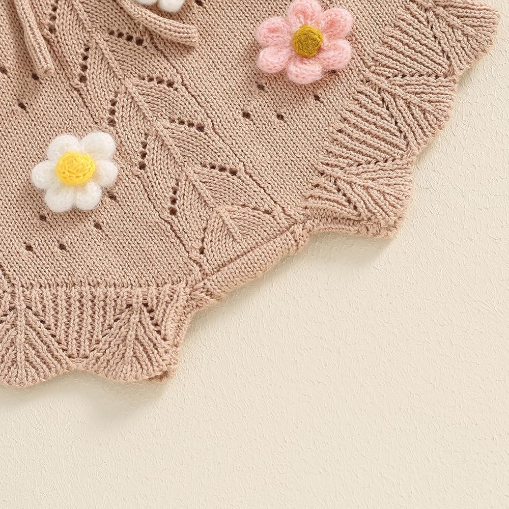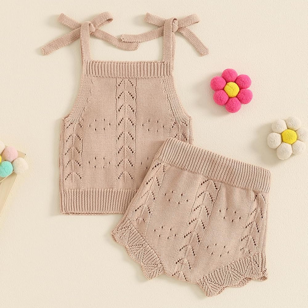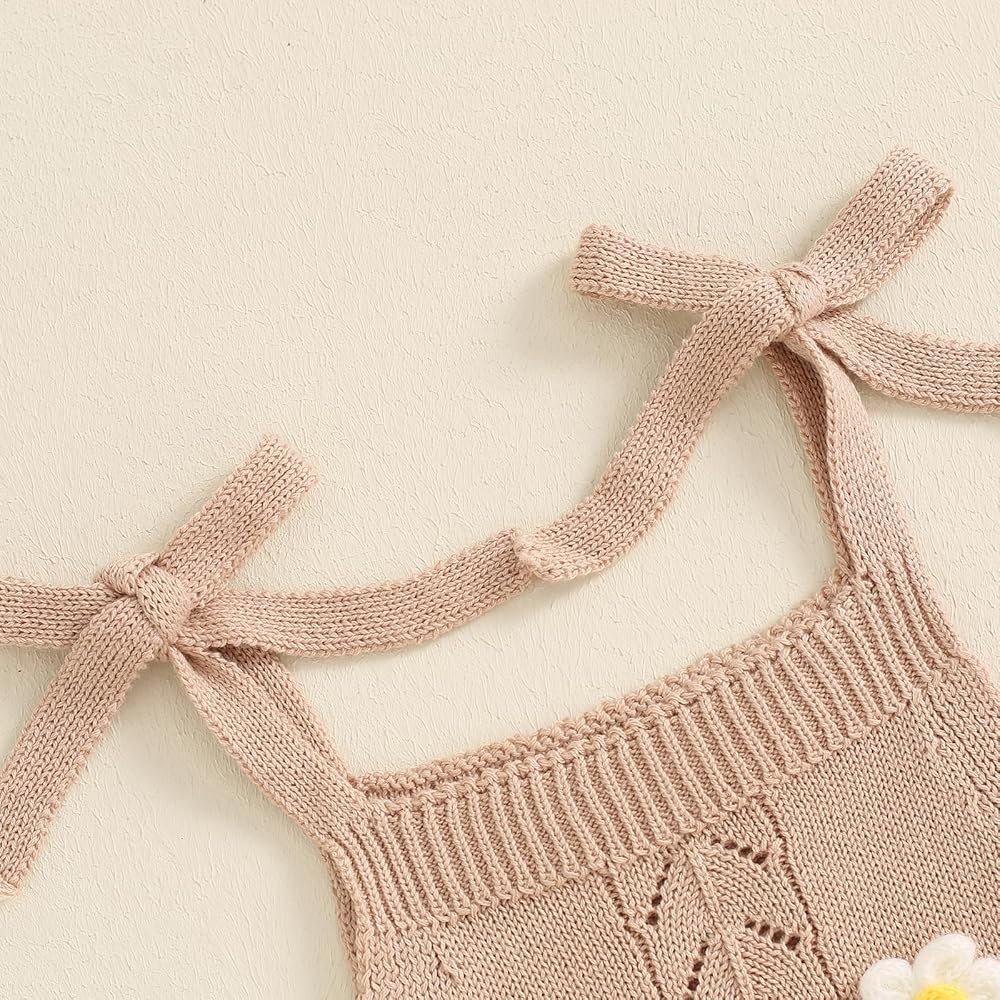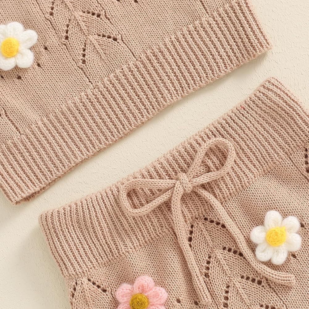 Design: The baby knitted outfits, sleeveless girls' camisole has tie-up spaghetti straps, pair with a pair of elastic waist shorts, the baby girls flower 2 piece outfit makes them fashionable and lovely. The baby girl's outfit is a very good gift for your daughter or niece on birthday. With this flower outfit, parents no need to spend much time on dress their baby girl.