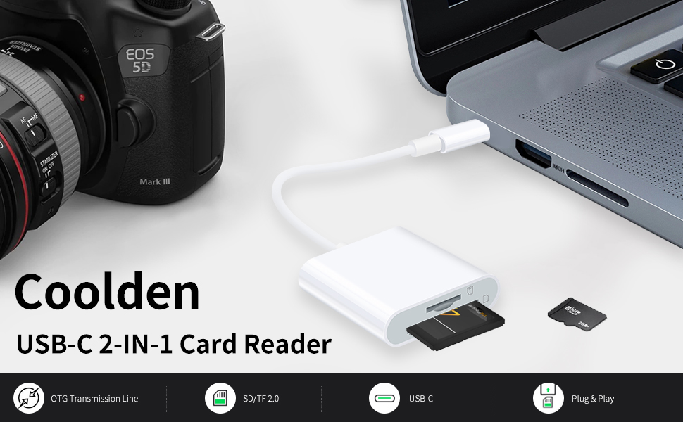 【2 in 1 Double Card Slot】Simplify your data transfer process with our versatile usb c sd card reader. Coolden usb c to sd card reader features an SD card slot and Micro SD card slot, 2-in-1 design make it easily download photos and videos directly from your SD card to your USB C Devices, eliminating the need for complex file transfers.