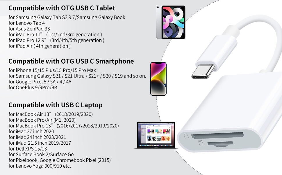 【High-Speed Transfer】The usb c memory card reader supporting super high-speed data transfer up to speed. Transfer large photos and videos in the blink,ensuring you never miss a moment of creativity. Whether you are a professional dealing with high-resolution images or someone who enjoys sharing photos and videos,this card reader is an excellent choice.