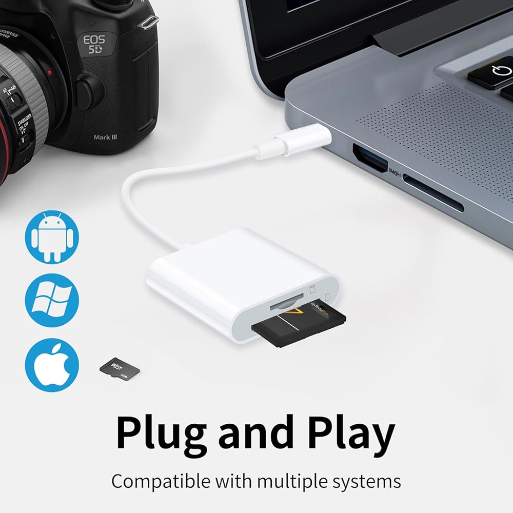 【Safe and reliable】The camera sd card reader can plug& play,no additional power needed. With over-current and short-circuit protection, safety is ensured for your important files.