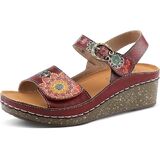*Casual sandal from L'Artiste *Hand-painted leather upper *Adjustable hook-and-loop closure *Comfort footbed with arch support *2" wedge heel *Please see size drop-down menu for brand-specific Euro conversion chart