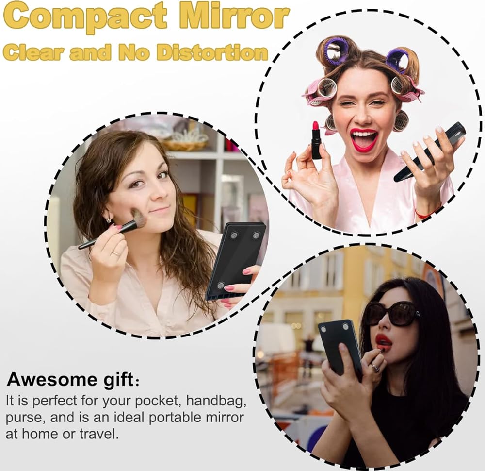 【FOLDING & PORTABLE】 This cosmetic mirror can be folded and adjusted by (from 20° to 75°), It can be placed on the table or can be retracted into a bag, This small mirror is very light weight, Only 1.7 oz and easy to carry, very suitable for travel and camping.