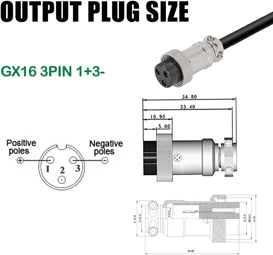 ⛔Attention: Please confirm that your battery interface is GX16 1+3- male and has the same polarity. If the polarity does not match, the charger will not work