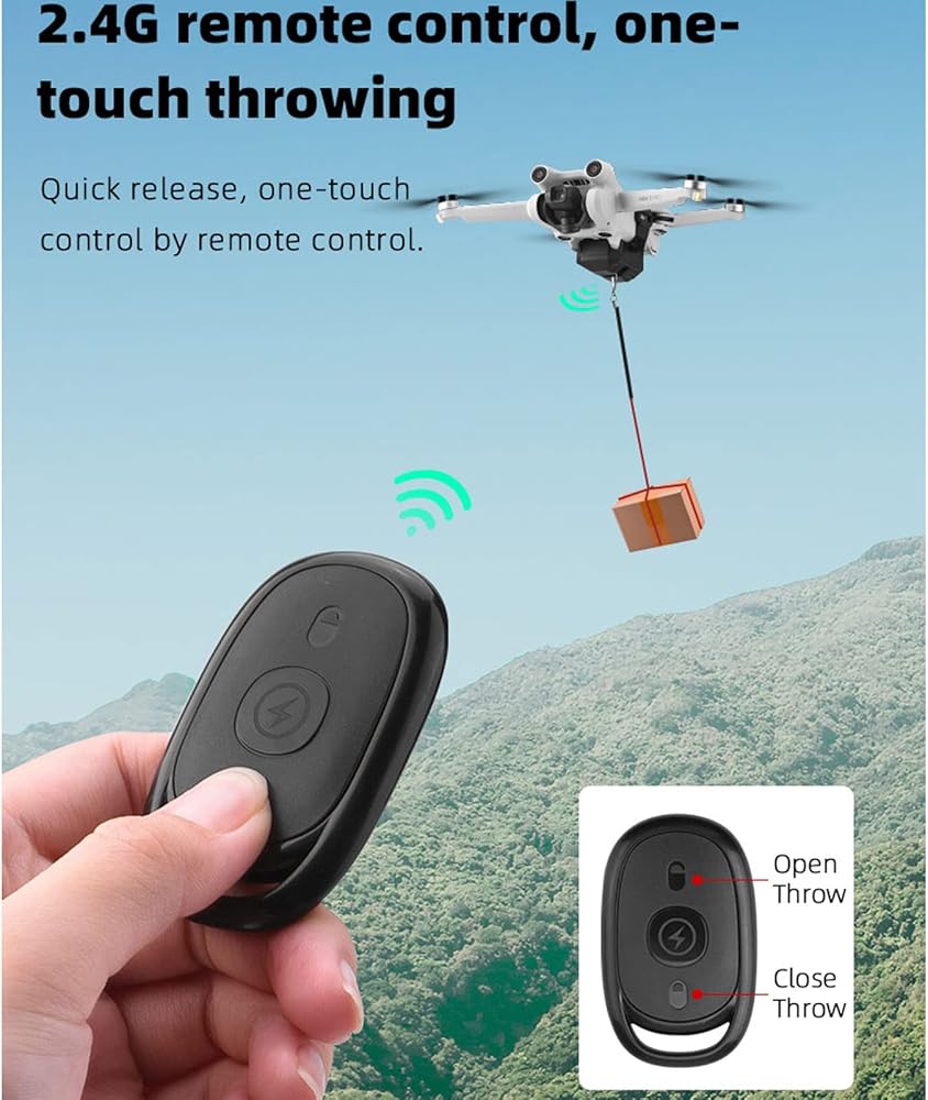 USB CHARGING: Drone dropper with USB charging, quick release, 2.4G remote control, one button start quick release, remote control one button control.
