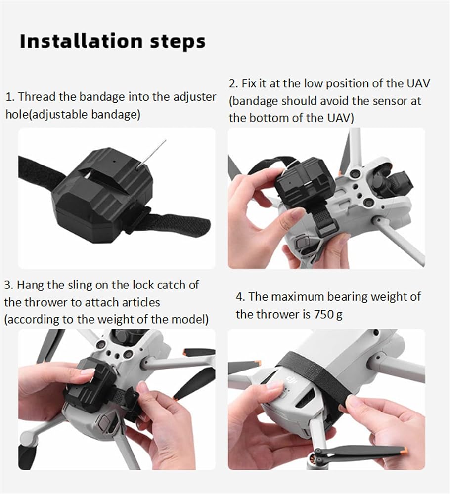 EASY TO USE: Thrower airdrop system is a tie installation, which is not on the airframe, so it is convenient and fast. Lightweight and , hardly affect the drone flight.