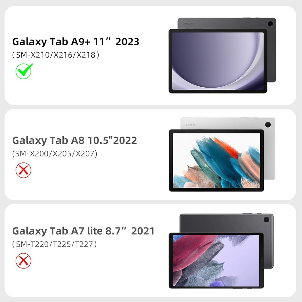 Compatibility - Compatible with Samsung Galaxy Tab A9+/A9 Plus 11" 2023, Model:SM-X210/X216/X218. Please check the model before purchase. Tablet or S Pen NOT INCLUDED,