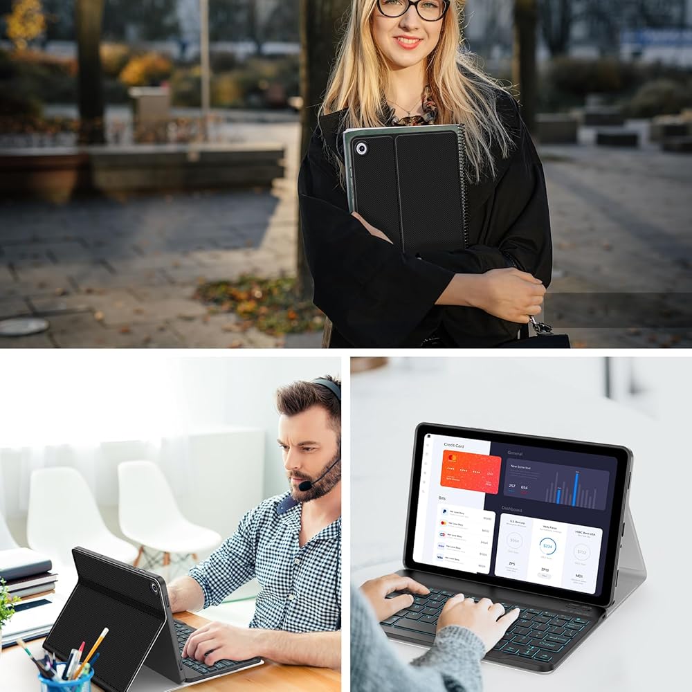 Slim and lightweight keyboard case; Premium PU leather outer layer and soft inner layer protects your tablet from damage, dust, fingerprints, scratches and bumps