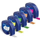 Replace for Dymo Label Maker Refills, Compatible with Dymo Letratag Plastic Label Refill 12mm x 4m-1/2 x 13' for LT-200B LT-100H LT-100T QX50, Black on White/Gold/Pink/Green/Silver, 5-Pack