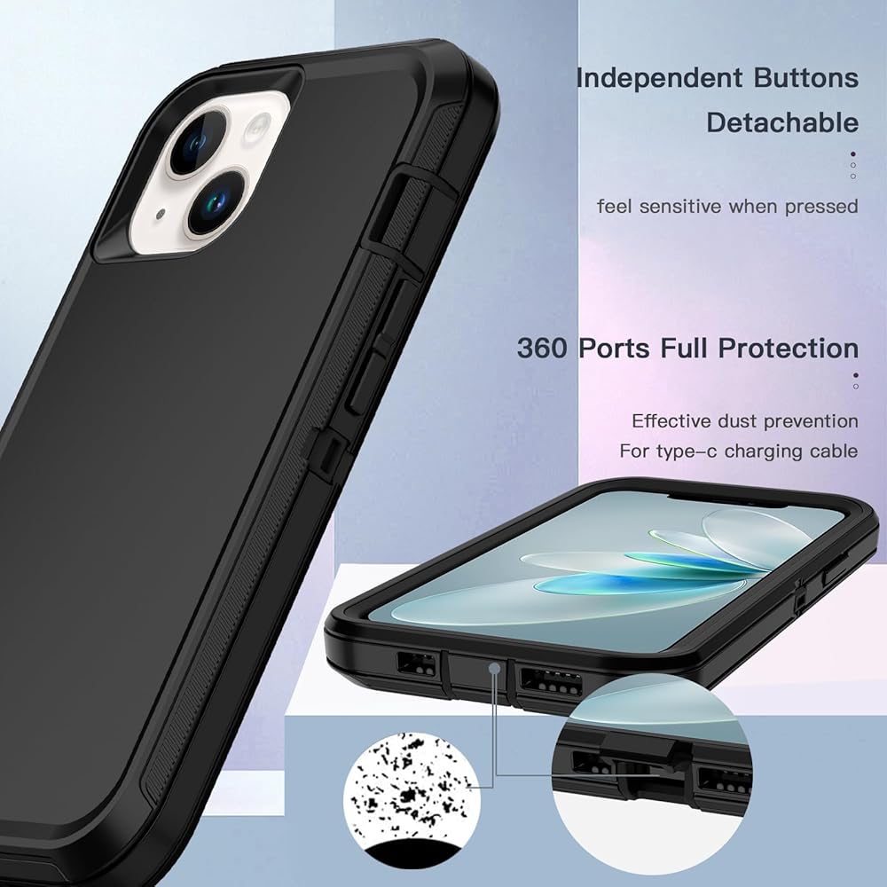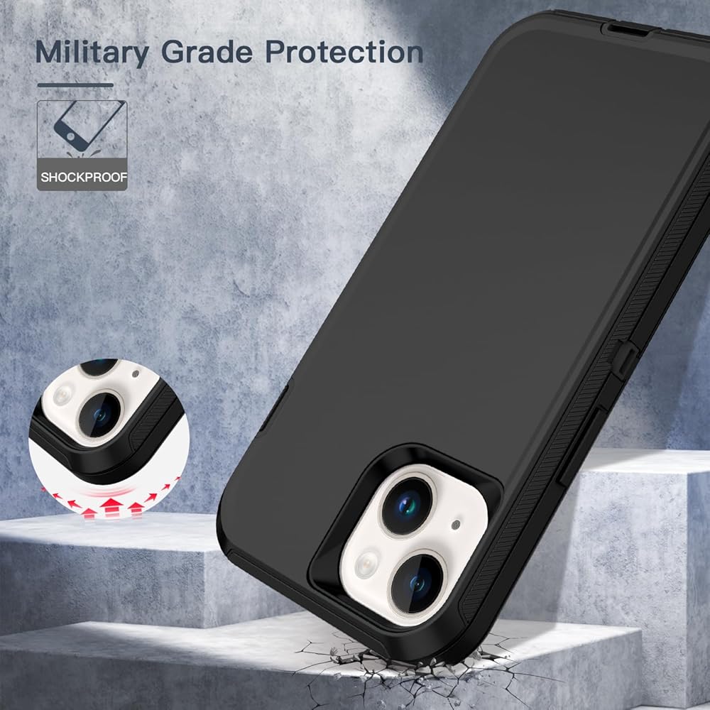 Hucasok Compatible with iPhone 14 Case Shockproof Rugged Full Body Protection Heavy Duty Dust/Drop Proof 3-Layer Cover Case for Apple iPhone 14 Case 6.1 inch 2022,Black