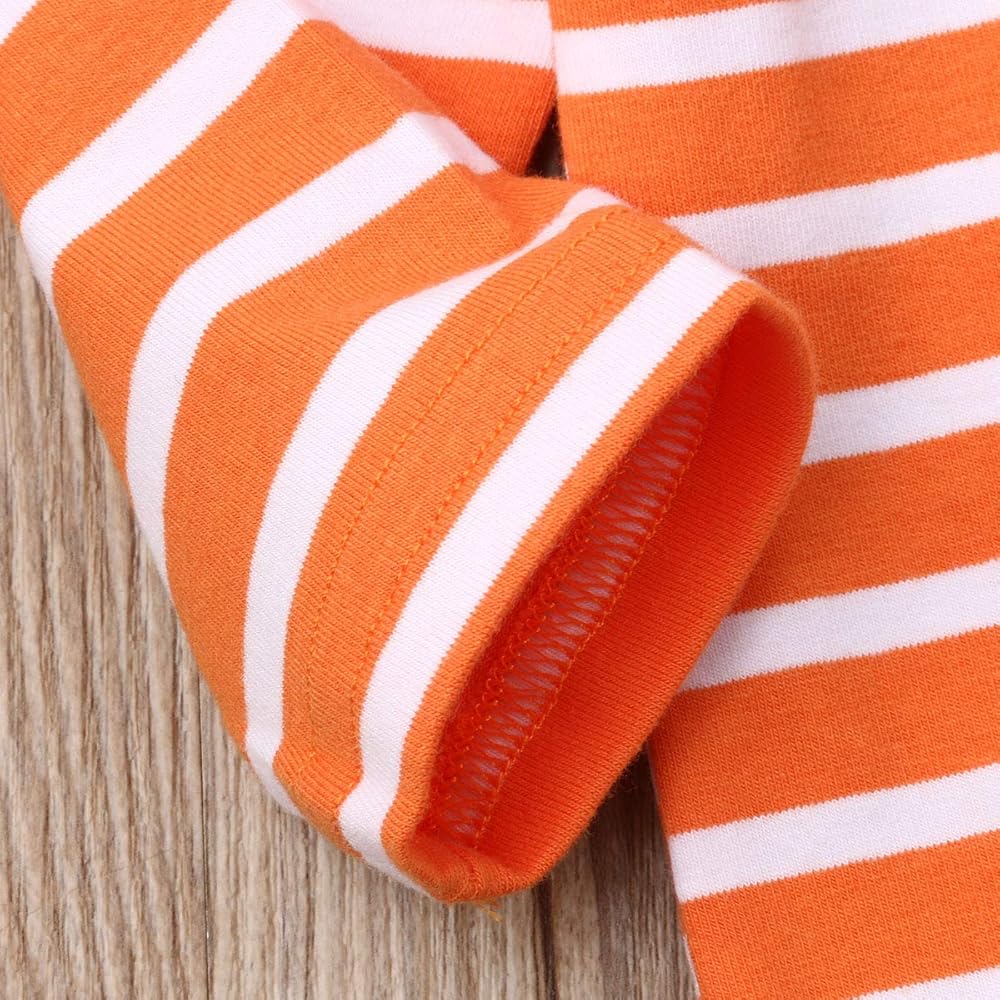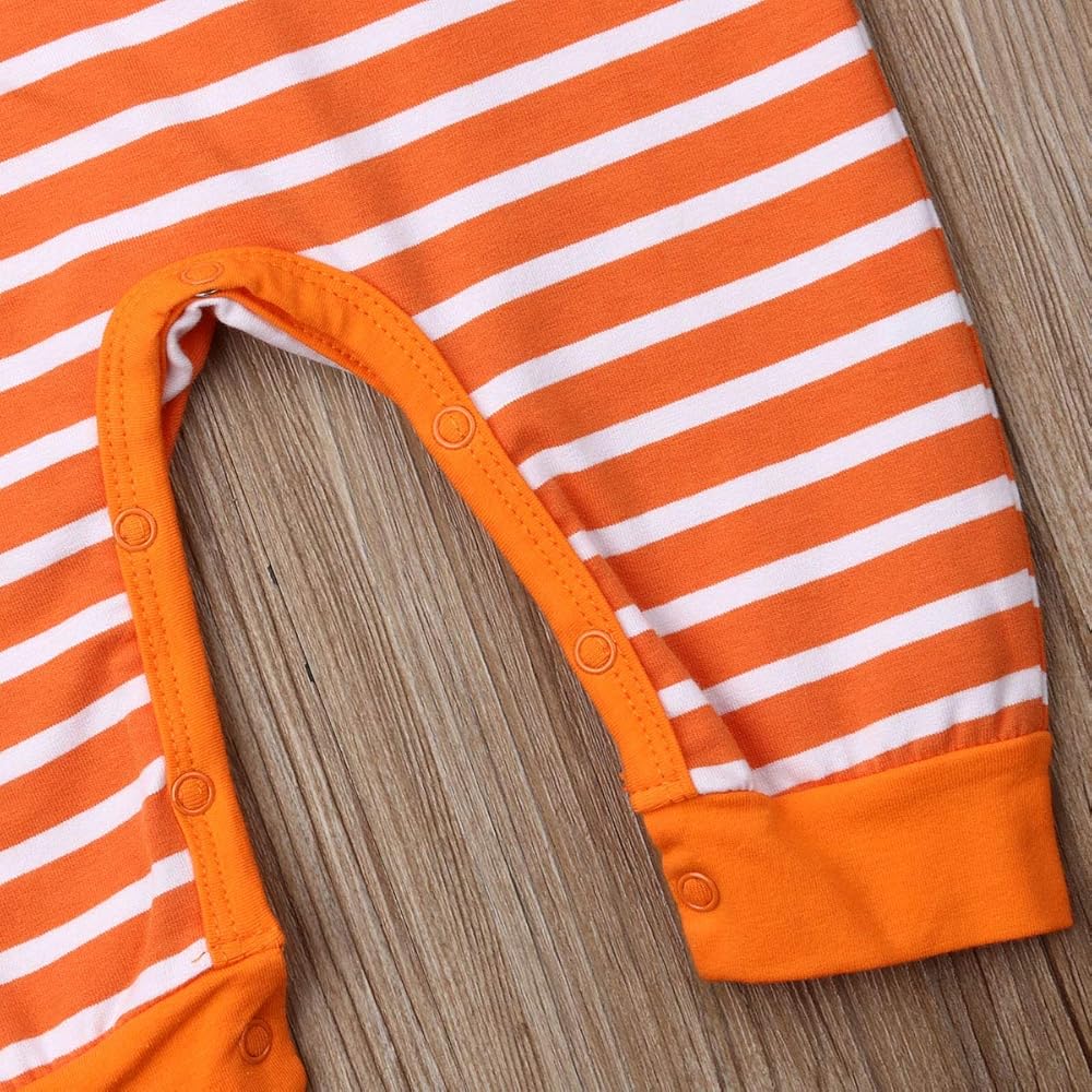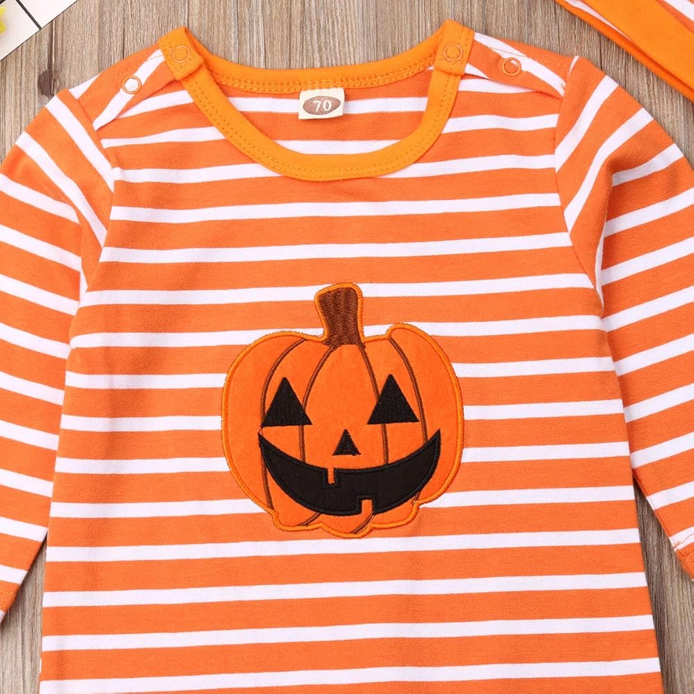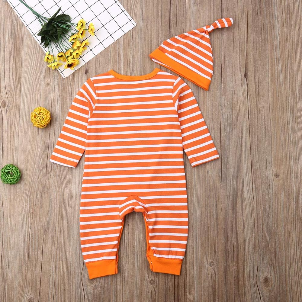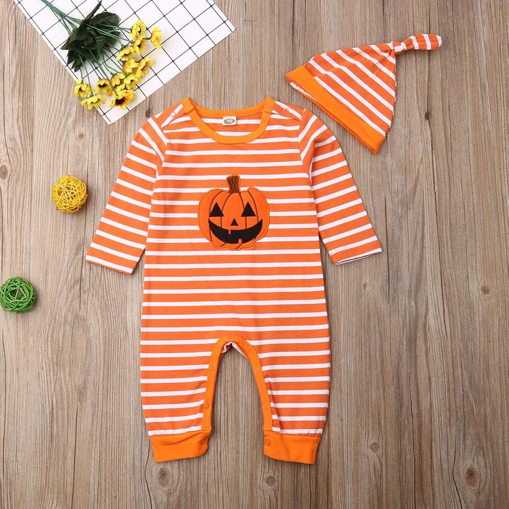 Bowanadacles Halloween Baby Girl Boy Outfit Clothes Newborn Infant Pumpkin Romper Stripe Jumpsuit Playsuit Hat/Headband