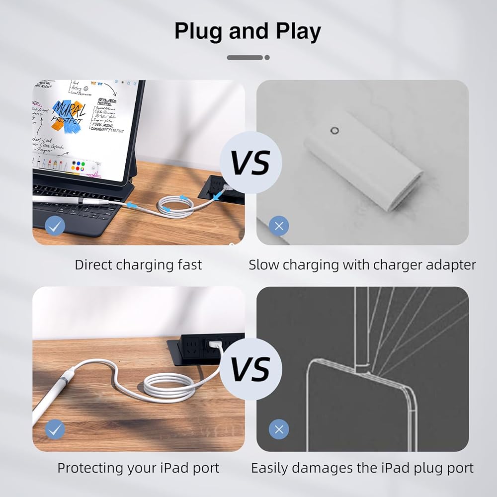【Only for Apple Pencil 1st Gen】The apple pencil charger cable is specifically designed to charge for Apple Pencil 1st generation. It does not support video/audio signal transmission or data transmission, nor does it support Bluetooth pairing.