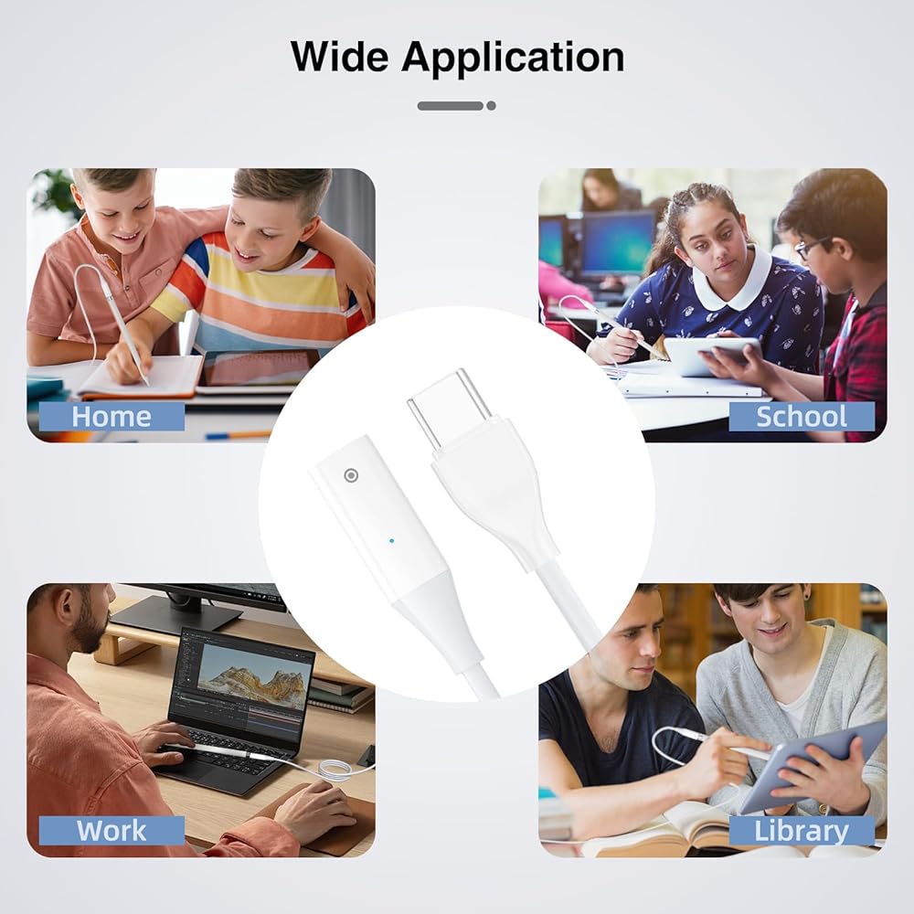 【Easy to Use】Just plug and play, no additional operations required. The indicator light on the adapter turns blue when plugging in the power or connecting the pencil. Note: The indicator light will not change when fully charged.
