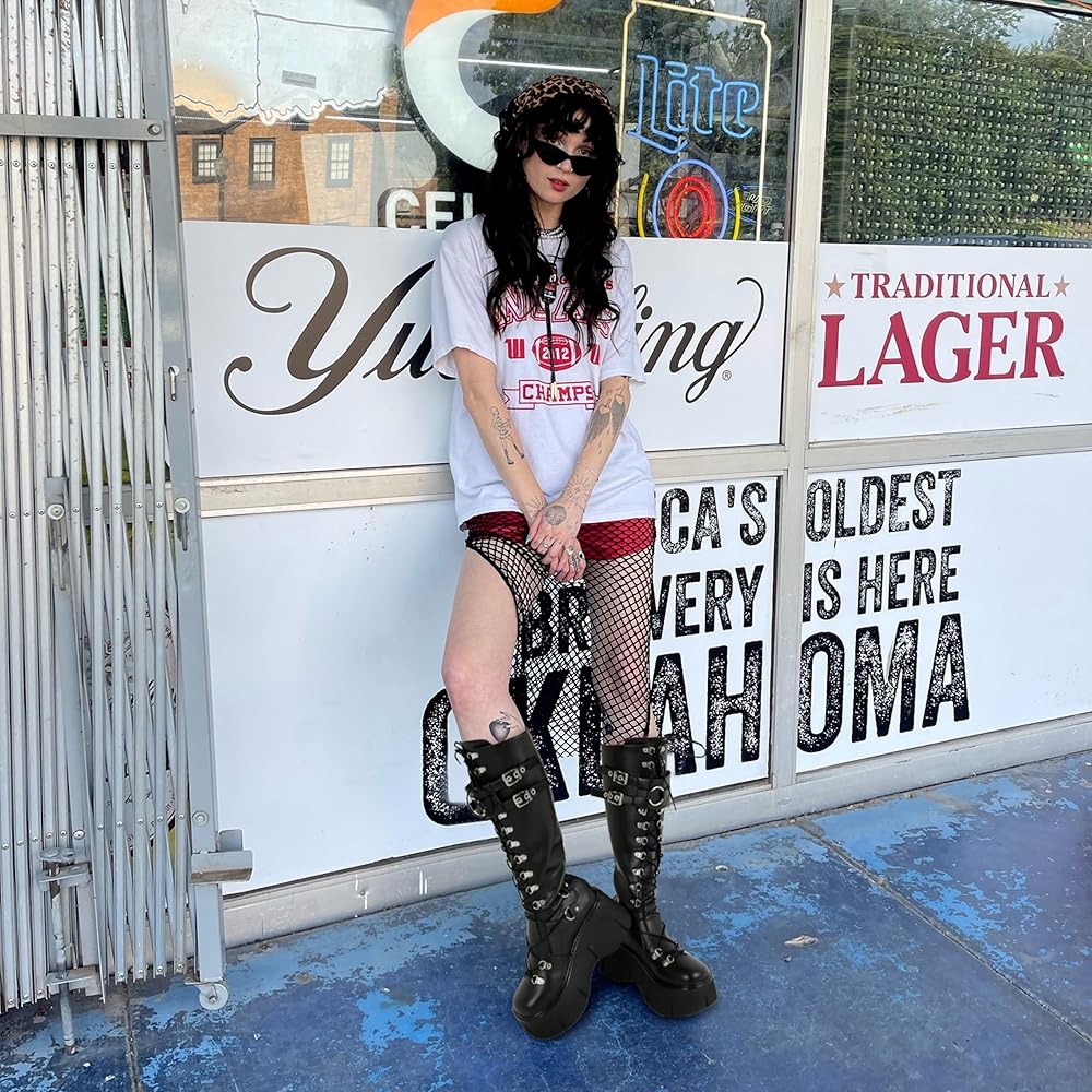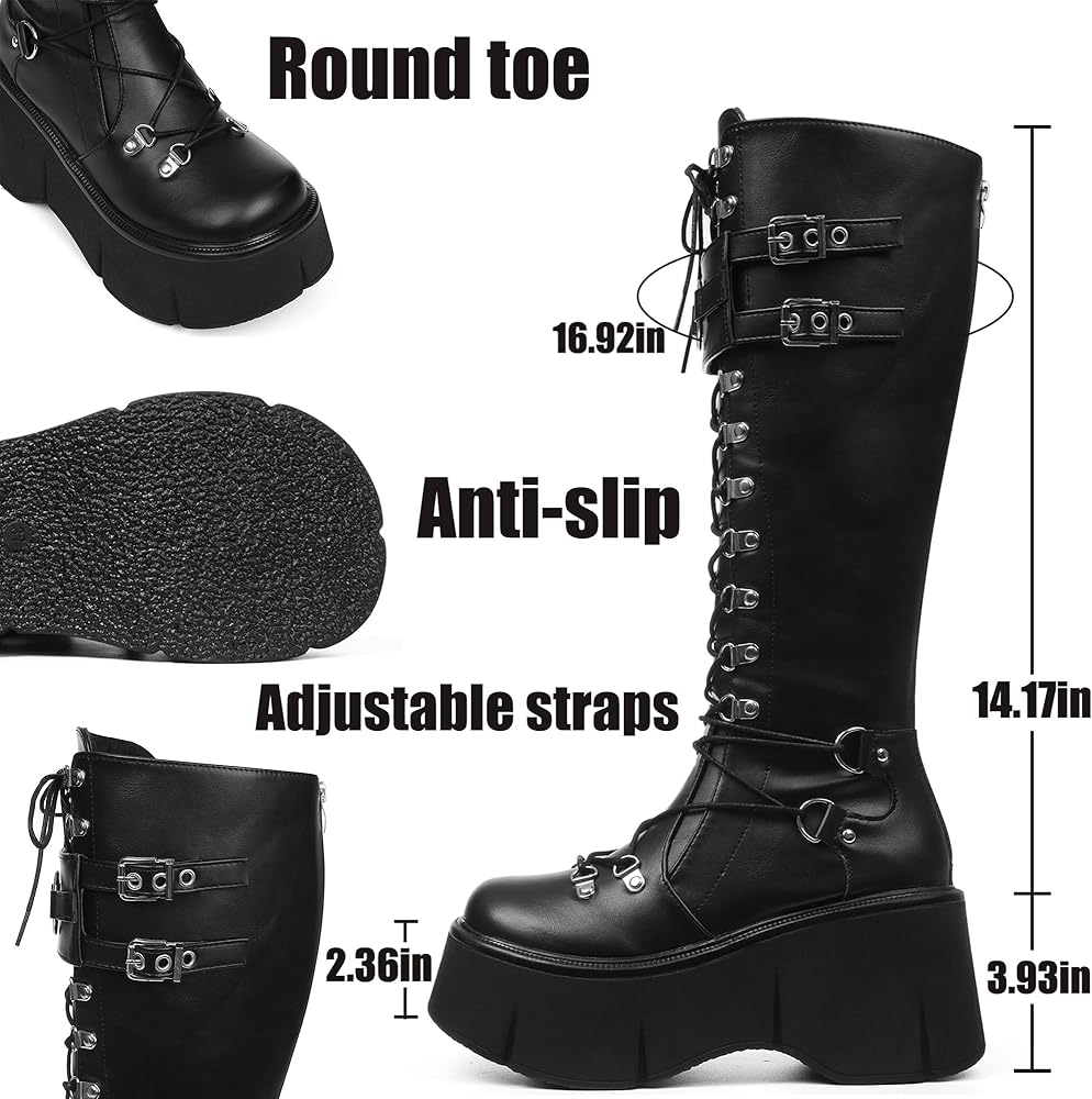 {المواد} الحذاء مصنوع من جلد صناعي مرن لم يتم الإساءة إلى الحيوانات لتصنيعه. تحافظ على دفء وجفاف قدميك وساقك طوال اليوم. اختر مواد عالية الجودة، وقولبة لمرة واحدة، وخطوط نعل مضادة للانزلاق، مما يجعل الأحذية ذات المنصة القوطية أكثر أمانًا وموثوقية. تتميز العديد من أحذيتنا أيضًا بنعال مبطنة وطبقة خارجية قوية. باطن للراحة والمتانة.