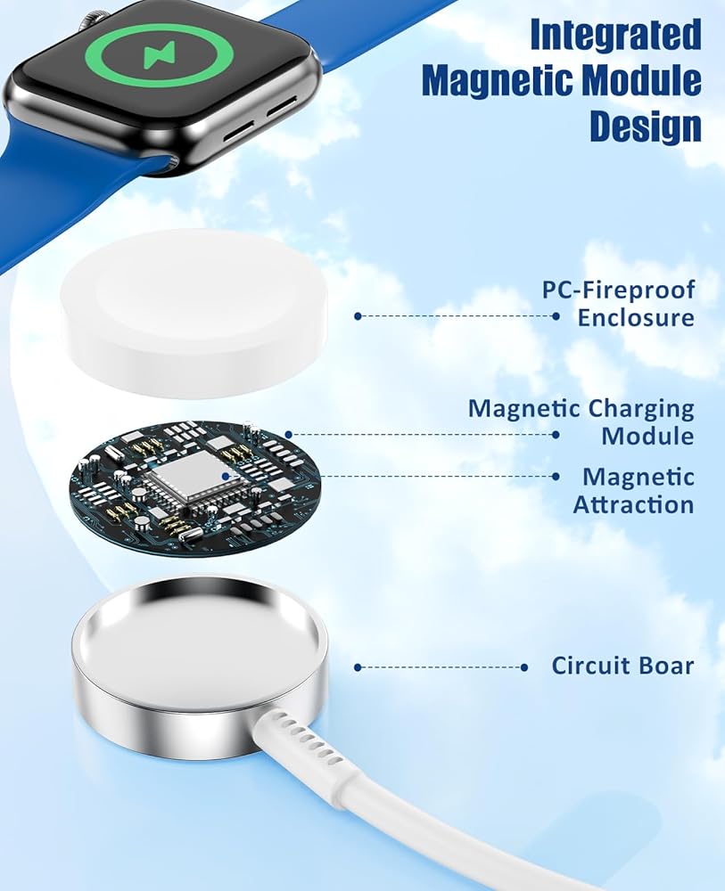 【2 in 1 iWatch & iPhone Charger】The 2024 new 2-in-1 smart iWatch magnetic cable compatible with Apple Watch, iPhone and airpods simultaneously. The fast smart watch charger avoid the trouble of carrying multiple charging cables when travel, it also make your life more convenient and efficient. The charger sets included PD 3.0 USB C fast wall charger, which is 3 times faster than the standard charger.