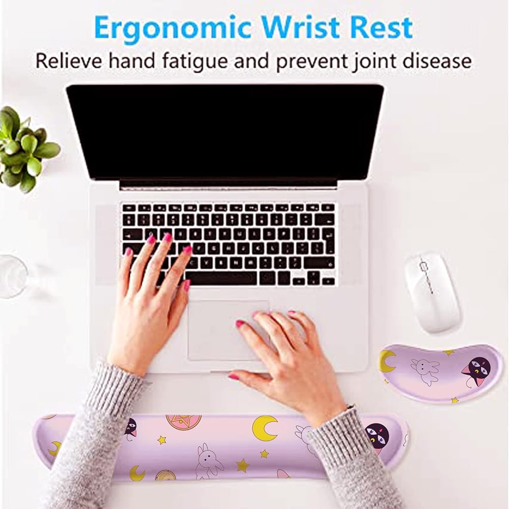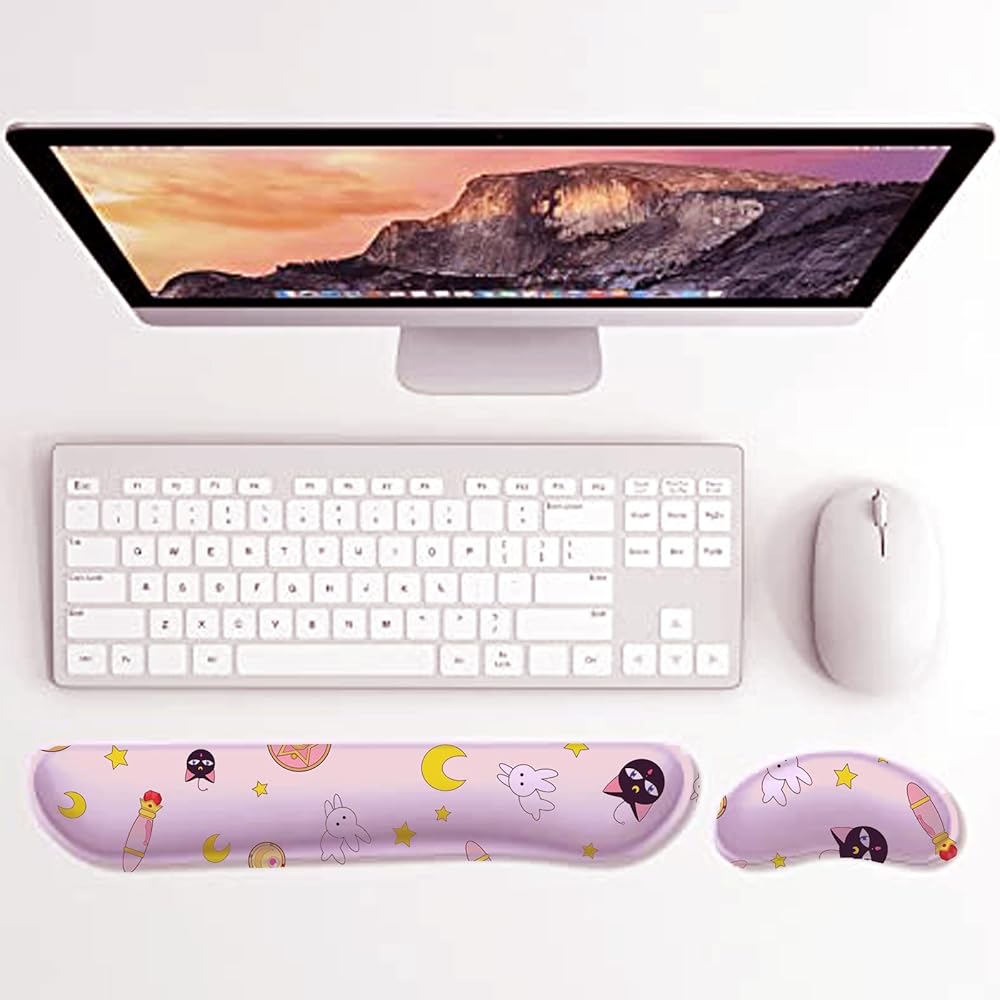 DUOAMARE Pink Anime Keyboard Wrist Rest Cute Kawaii Mouse Pad with Wrist Support Mouse pad Enlarge Gel Memory Foam for Computer Desk Decor Accessories Office Gaming Laptop