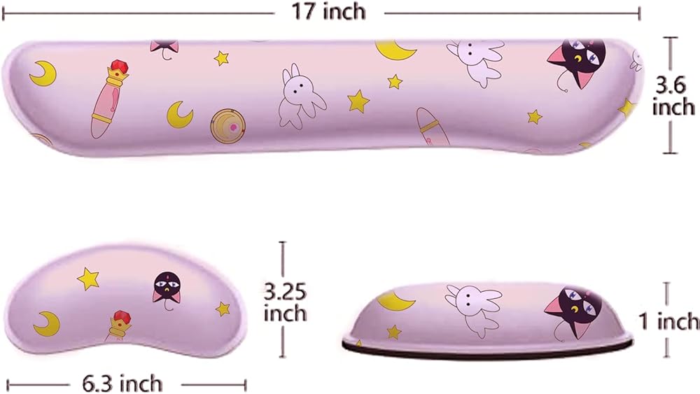 Enlarge Thicken Size: 17*3.6*1 inch keyboard wrist rest pad and 6.3*3.25*1 inch mouse wrist pad offer more support to your wrist.