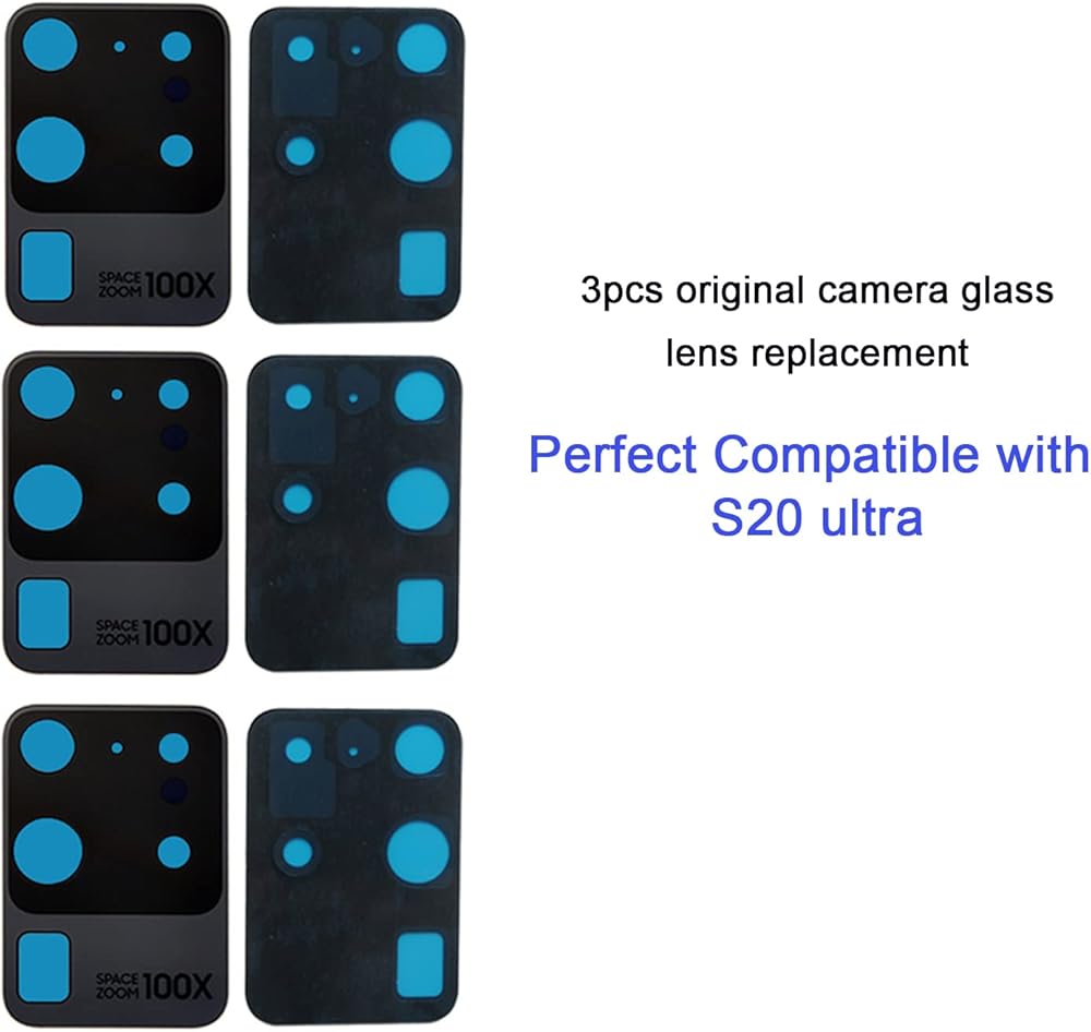 There are 3pcs galaxy s20 ultra camera glass lens replacement included in the package in case of an accident, the rear back camera glass lens comes with strong preinstalled, which make installation more easier.