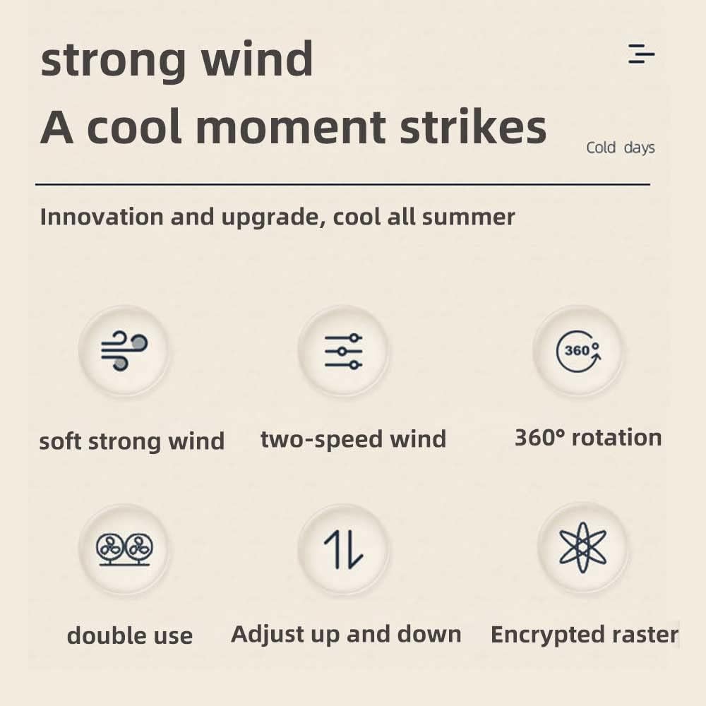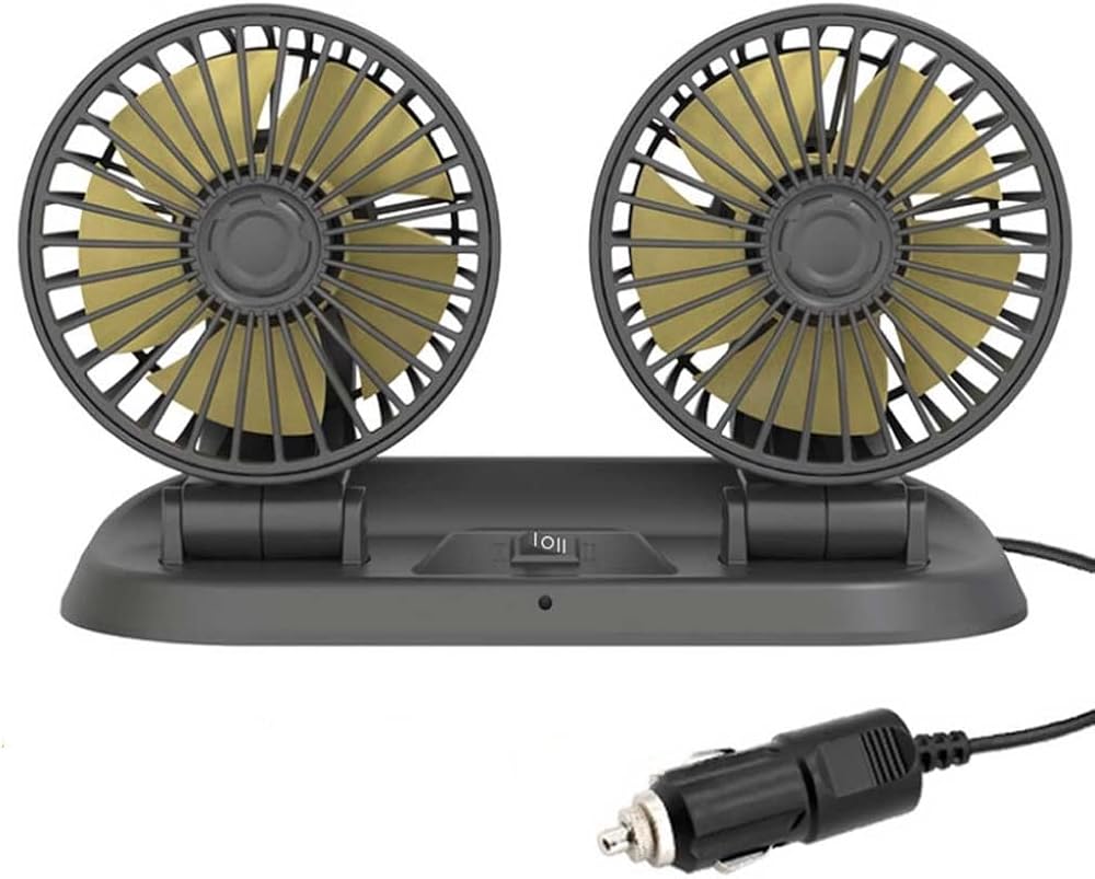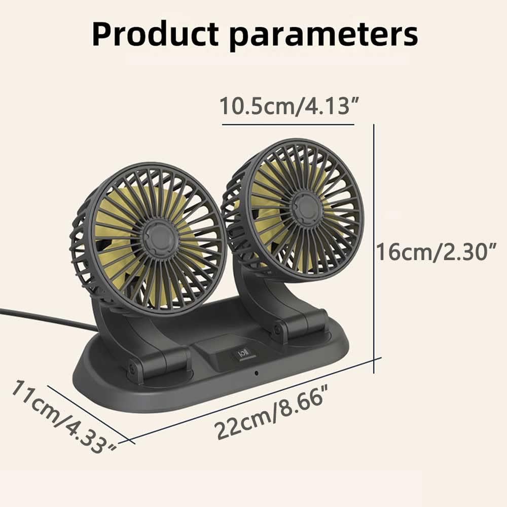 Compact Size: The overall size of this dual head electric table fan is approx. 22*11*16cm/8.66"*4.33"*2.30", and each fan diameter is approx. 10.5cm/4, 13", which won't take up too much space and won't block your driving vision if you install it on your dashboard, also convenient to carry.