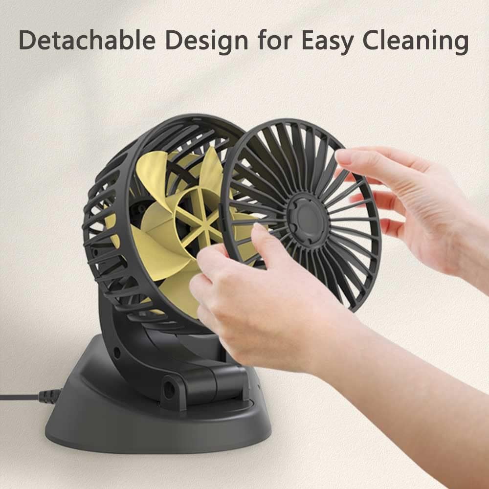 Easy to Install and Clean: Simply peel off the adhesive tape from the base to secure the car fan in the desired position. The outer cover can be removed for cleaning.
