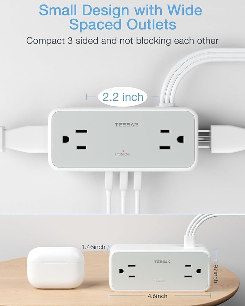 Surge Protector Outlet: It is surge protected for 900 Joules, protecting your electrical appliances from lighting, surges and spikes at home, office dorm etc