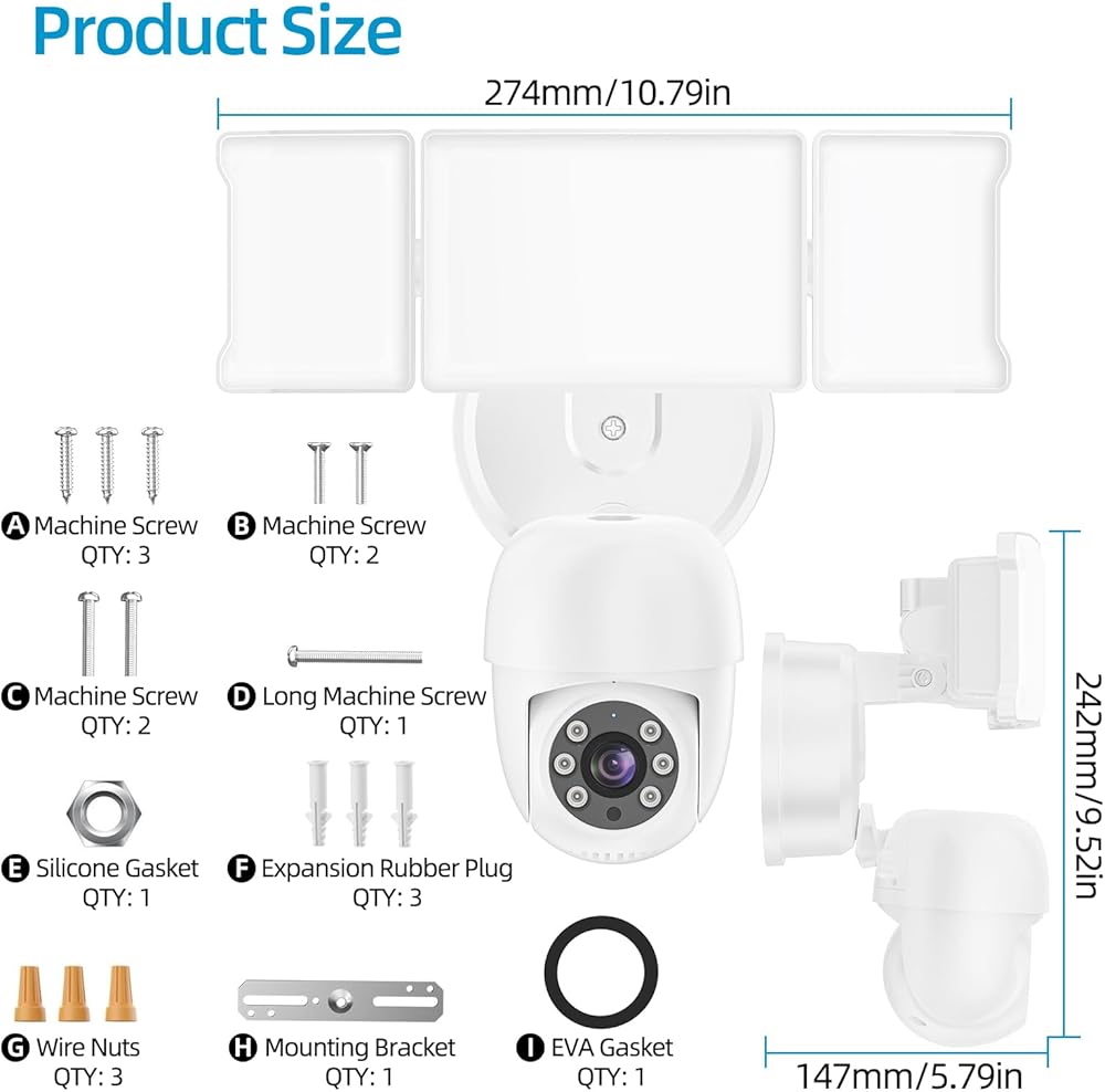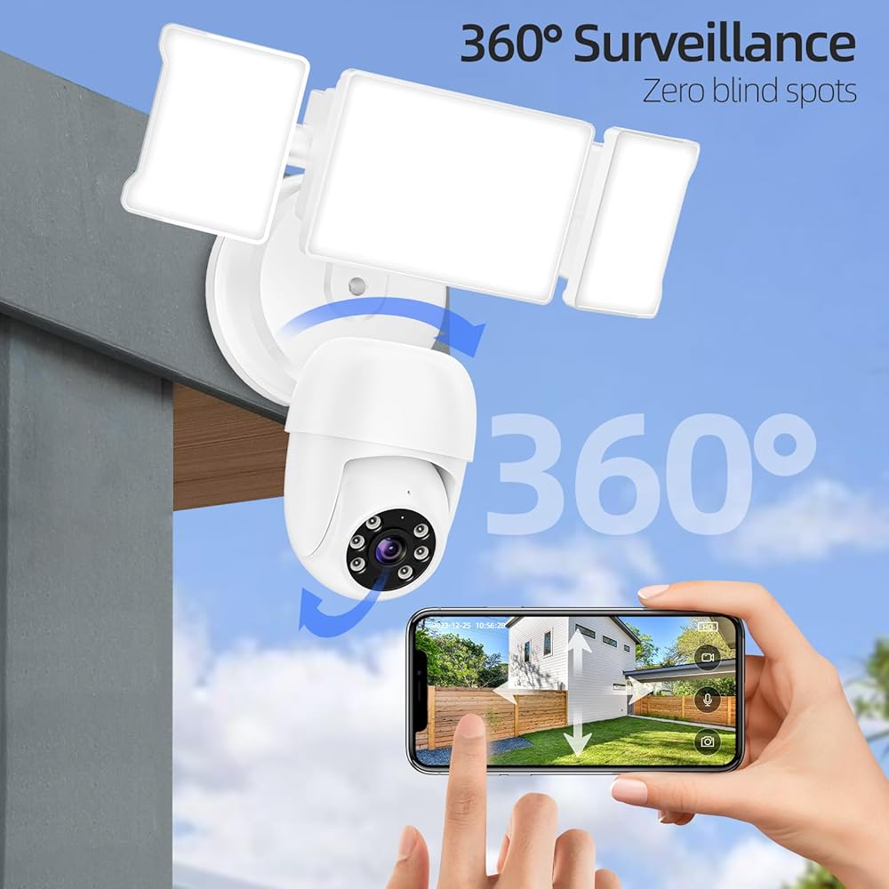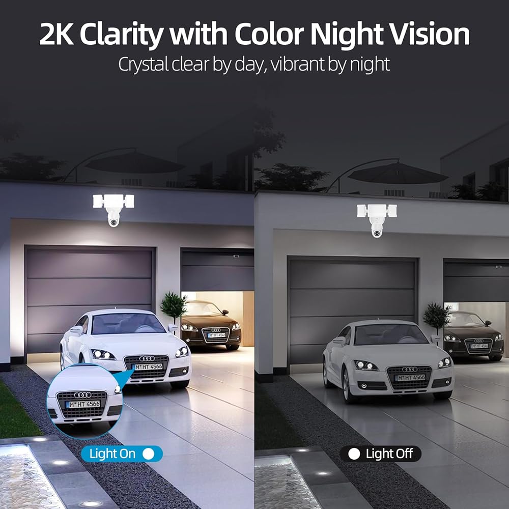 Unparalleled 2K QHD Clarity & Enhanced Color Night Vision: Experience exceptional visual quality with the Olafus outdoor floodlight camera, delivering 2K QHD video for incredible clarity and detail. Its advanced color night vision ensures vivid, rich recordings even in low light, providing round-the-clock surveillance.