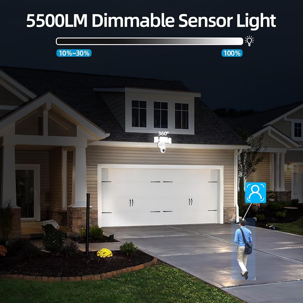 Olafus Floodlight Camera Outdoor, 2K Smart Security Cam, 55W 5500LM Outside Flood Light Wired, Exterior Motion Sensor LED Light Fixture with 360° Pan & Tilt, Color Night Vision for House Yard White