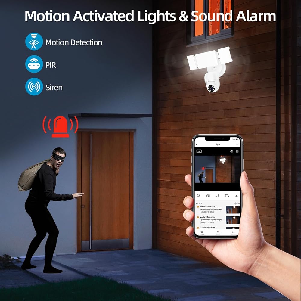 Advanced Motion Detection with Instant Alerts: Enhance home security with a 180° PIR motion sensor that triggers instant illumination upon detecting movement. Receive immediate notifications on your phone, staying informed about any detected activity.