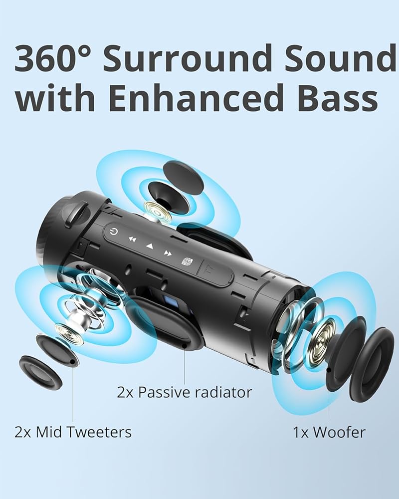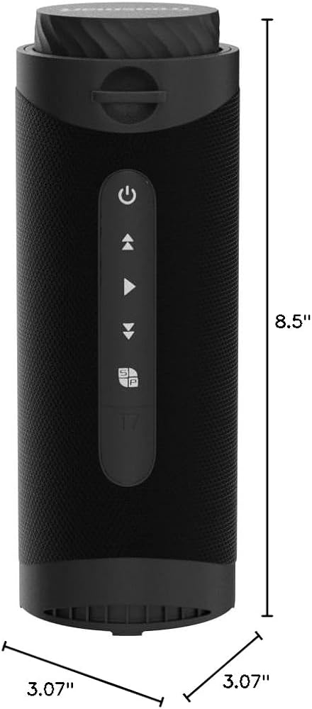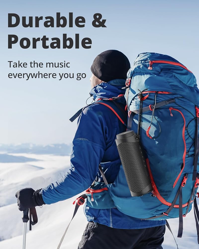 【IPX7 Waterproof Speaker & Durable Lanyard】T7 portable speakers Bluetooth wireless is resistant to rain, dust, snow, mud, sand, and spills, and an excellent speaker for pool parties, beach parties, and biking, hiking, camping, etc. Comes with a sturdy and durable lanyard, you can carry the lanyard directly in your hand or attach a carabiner to hang it on the straps of a beach chair or hiking backpack.