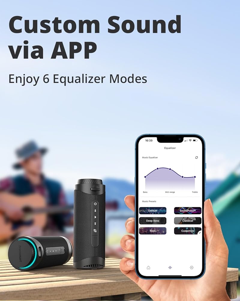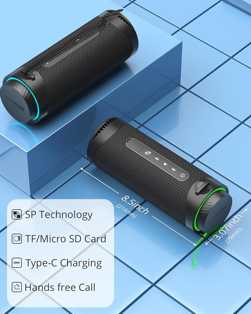 【Personalized EQ & Hands-Free Calling】With Tronsmart APP, you can customize the sound without interrupting your music and enjoy 6 audio effects. Besides, the speaker also can cache the settings of the volume and LED lighting. Double press the "Play/Pause" button to activate voice assistants such as Siri, Google Assistant, etc.
