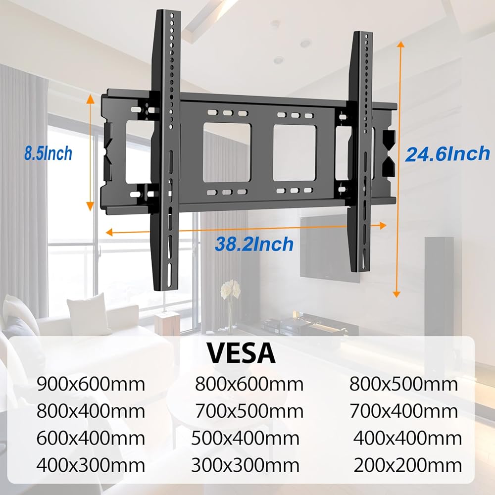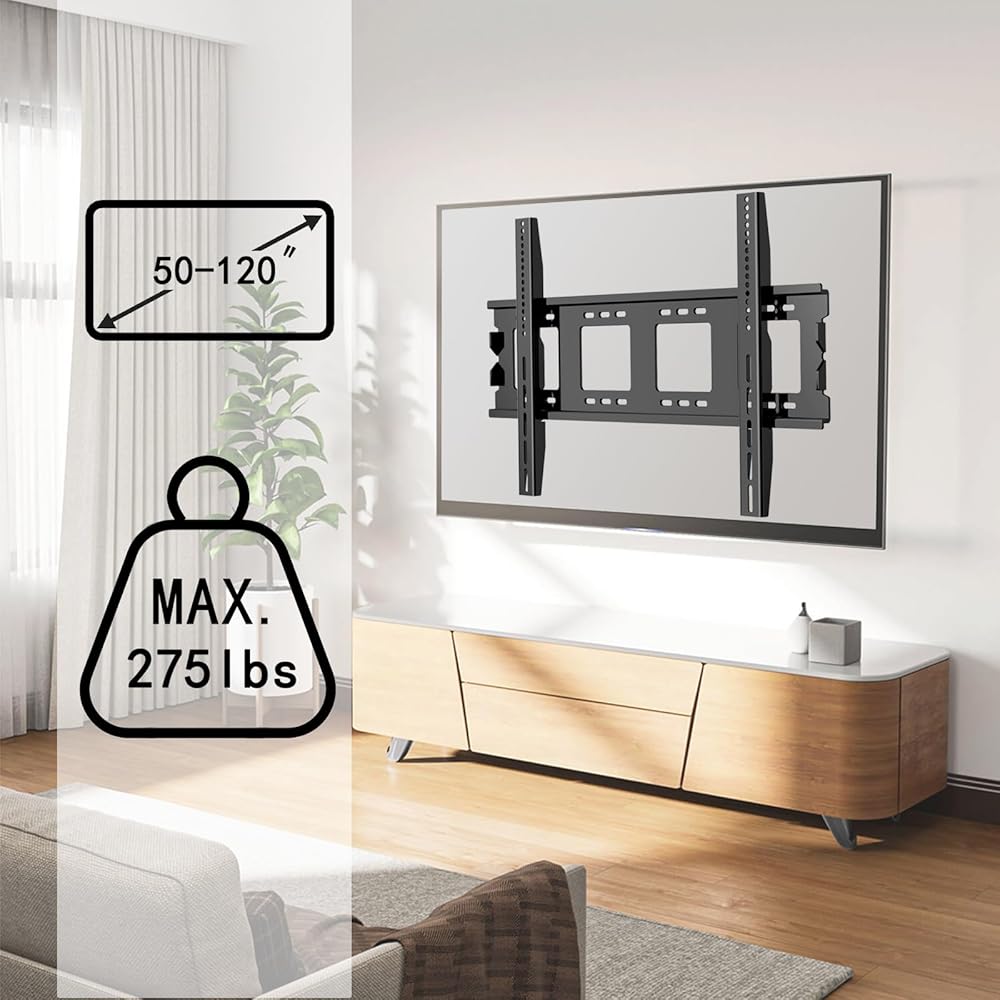 Universal Large TV Wall Mount:Our TV wall mount fits for your valuable 50-120 inch flat/curved TVs. Max VESA 900*600mm and 275lbs weight capacity makes it strong enough to hold your TVs.