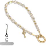 【Package Contents】: 1 unit of pcgaga Phone Charm Wristlet - Crystal Pearl Beaded strap bracelet ( not include phone case); 2 free bottom tabs(if you like hanging the chain at bottom)
