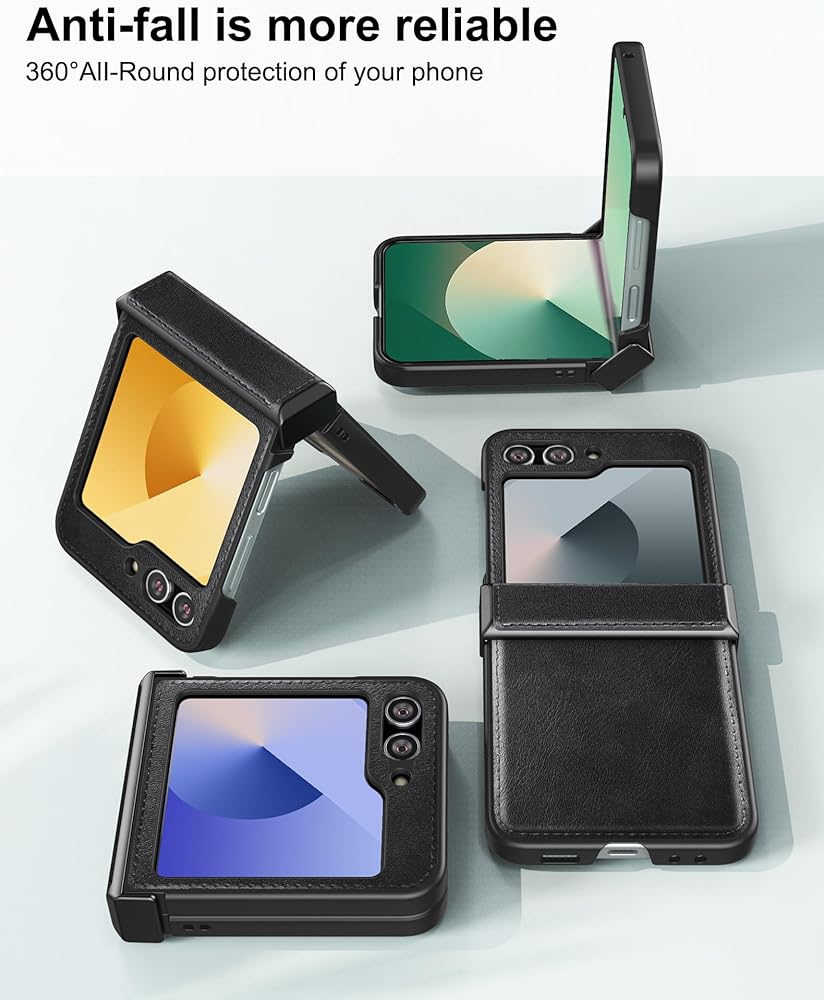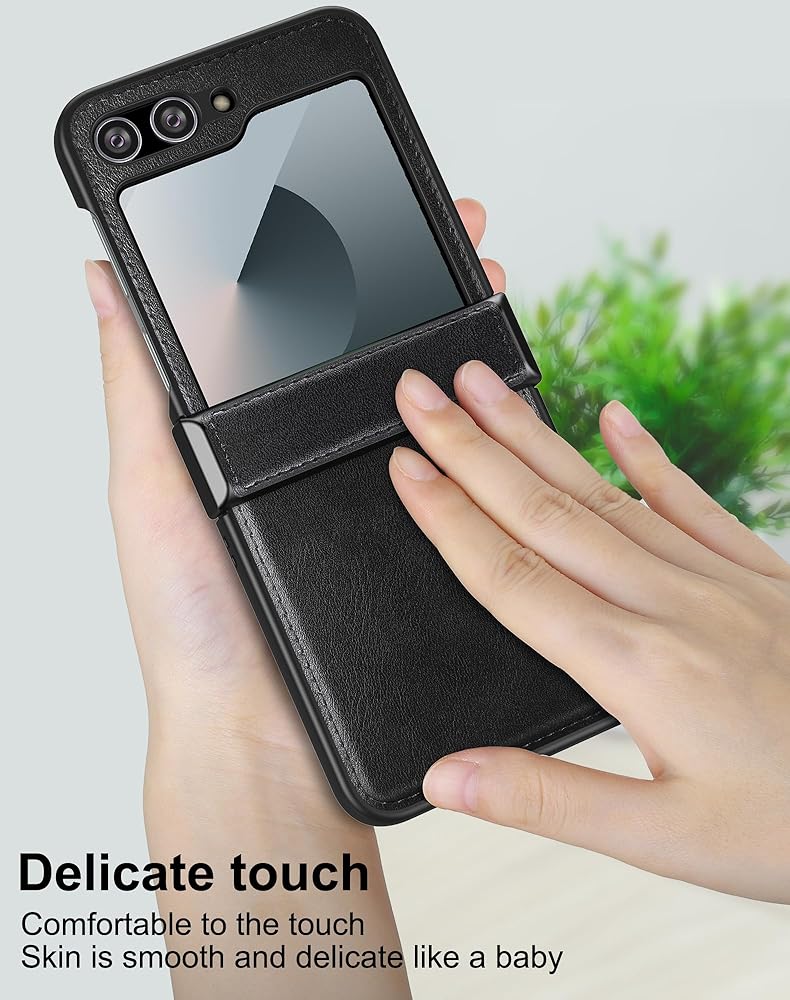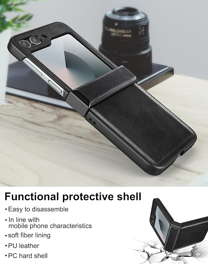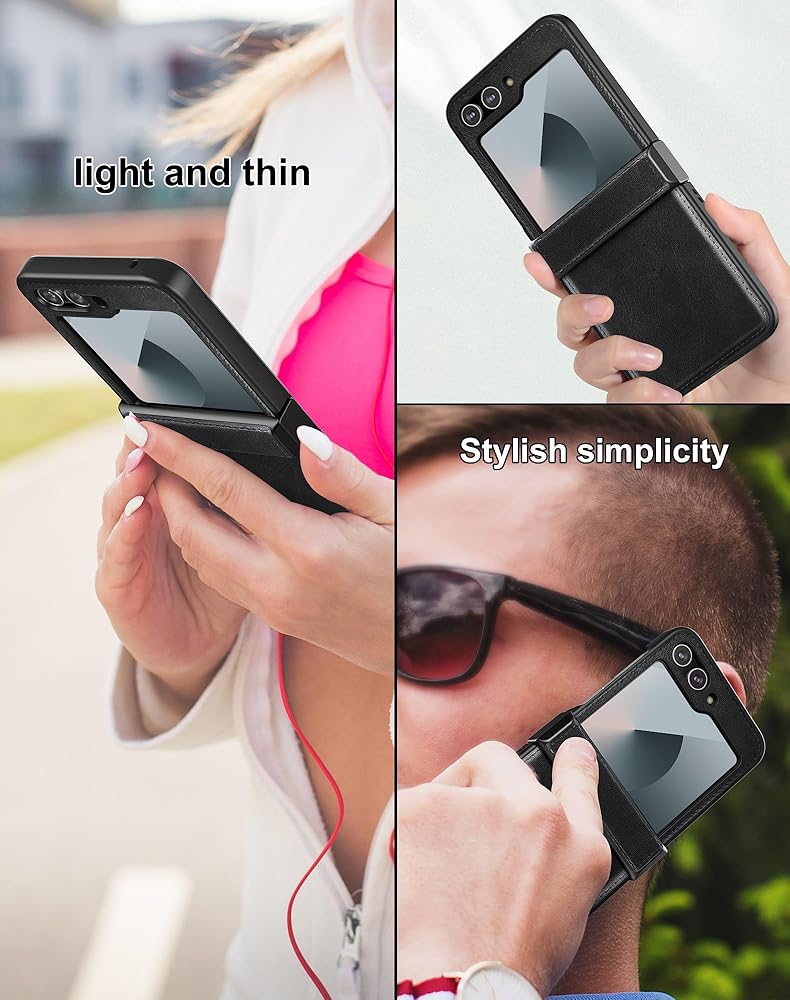 【HINGE PROTECTION, PU LEATHER + HARD PC CASE】: Galaxy Z Flip 6 Leather Case is Made of Hard PC PU Leather Back. Classic PU synthetic leather back case stylishly provides an elegant and fashion look and feel. Good quality and great looking case. Hinge cover piece provides some level of drop protection.