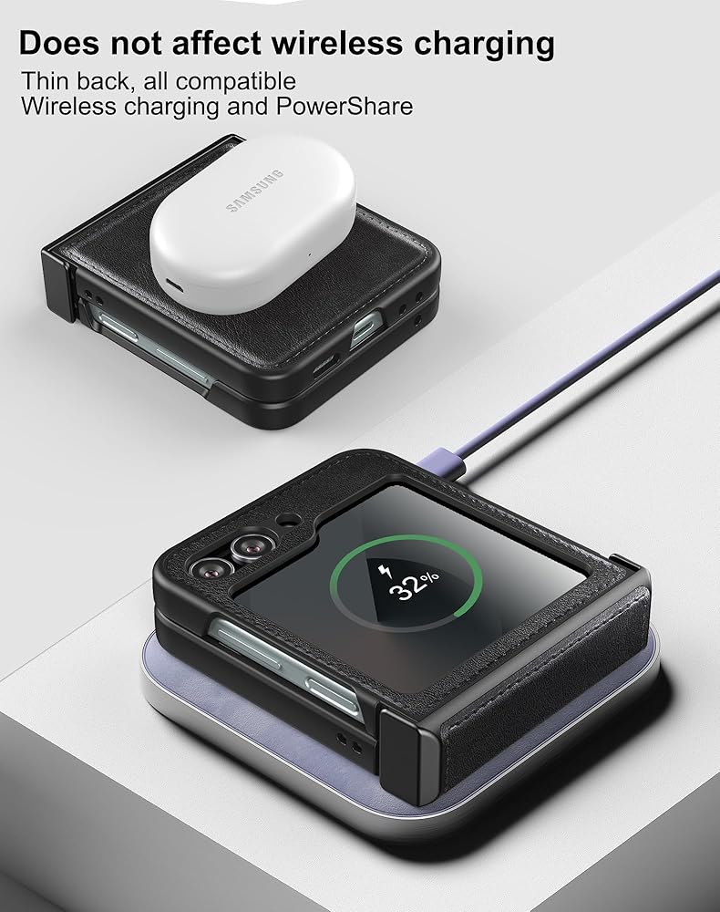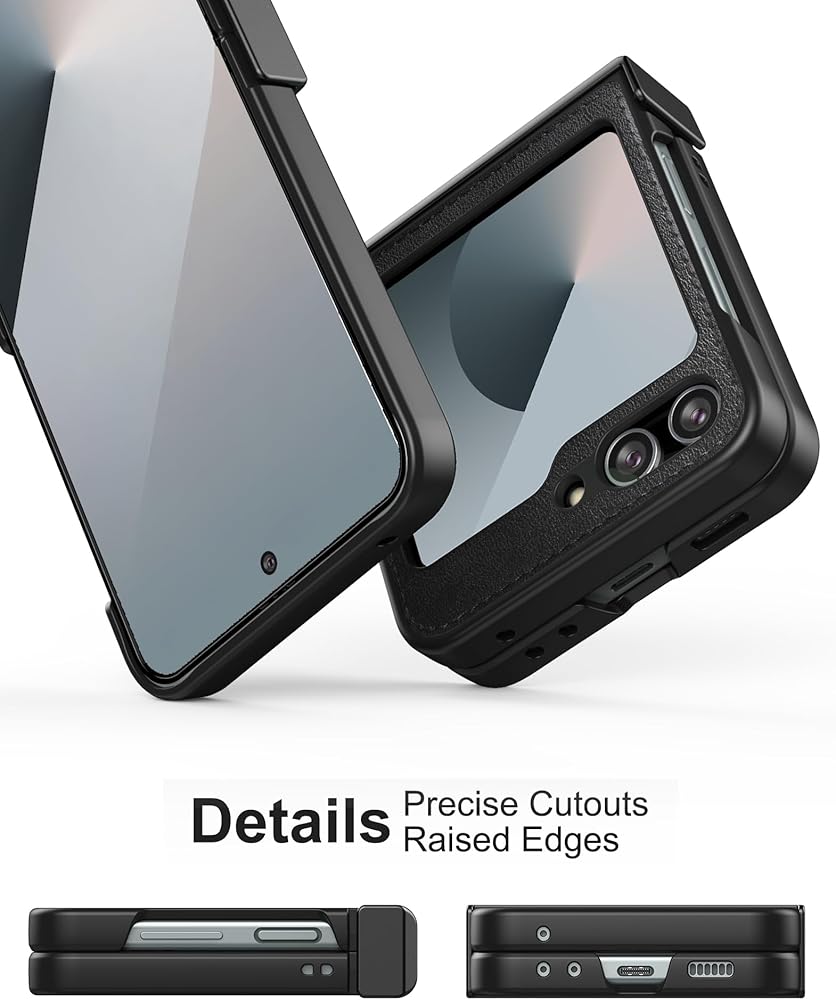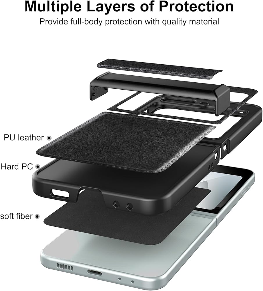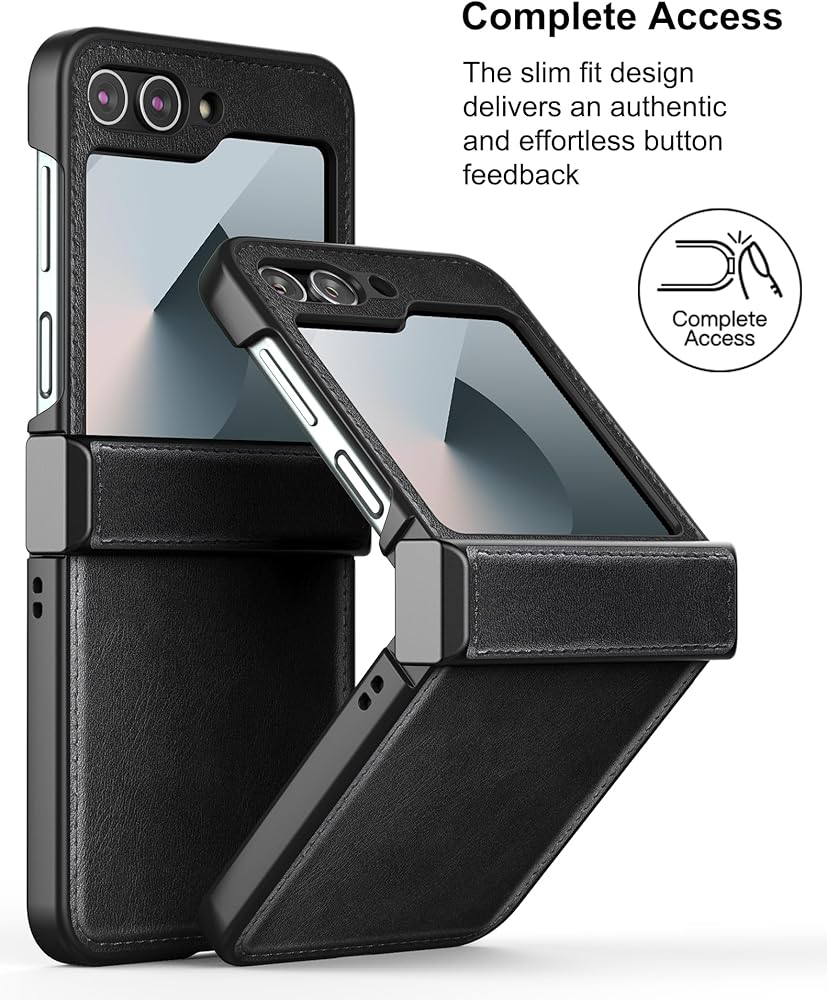 【HINGE PROTECTION, PU LEATHER + HARD PC CASE】: Galaxy Z Flip 6 Leather Case is Made of Hard PC PU Leather Back. Classic PU synthetic leather back case stylishly provides an elegant and fashion look and feel. Good quality and great looking case. Hinge cover piece provides some level of drop protection.
