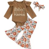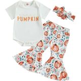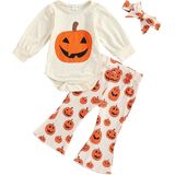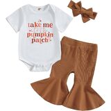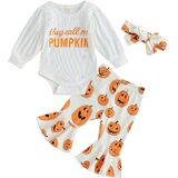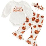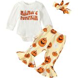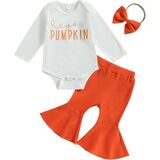 STYLISH DESIGN: Fall baby girl clothes,Halloween baby clothes, pumpkin letter prints add a touch of festive atmosphere. Featuring short sleeve/long sleeve and a crew neck, punpkin letter print, flare pants elastic waist pants, bell-bottomed pants sets. baby girl romper with stretchy flared pants and cute headband set is perfect summer outfit for your girl.