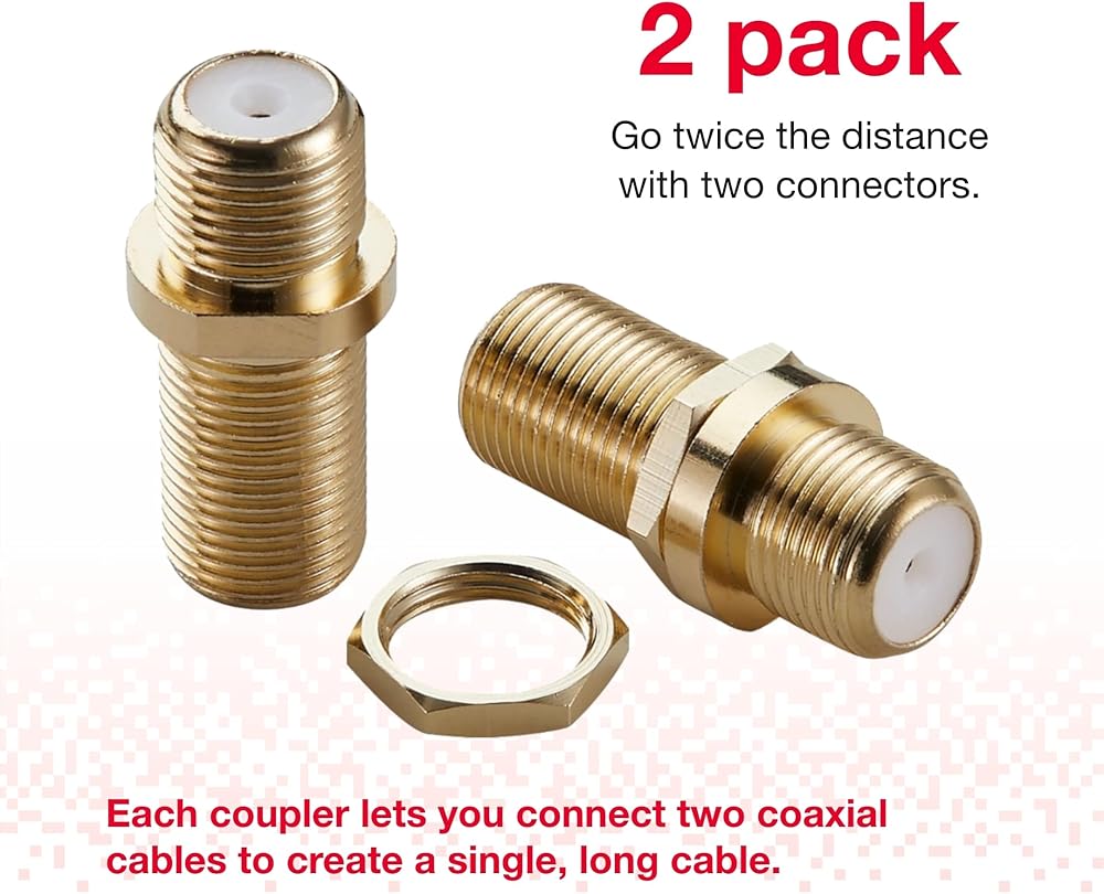 Our coaxial cable coupler pack comes with two connectors, doubling your ability to extend and enhance your system's reach. They're a breeze to install, meaning you can effortlessly combine cables to achieve the perfect length without needing any technical expertise. This added flexibility allows you to customize your setup to match your specific layout, whether it's for a simple home theater arrangement or a more complex multimedia center.