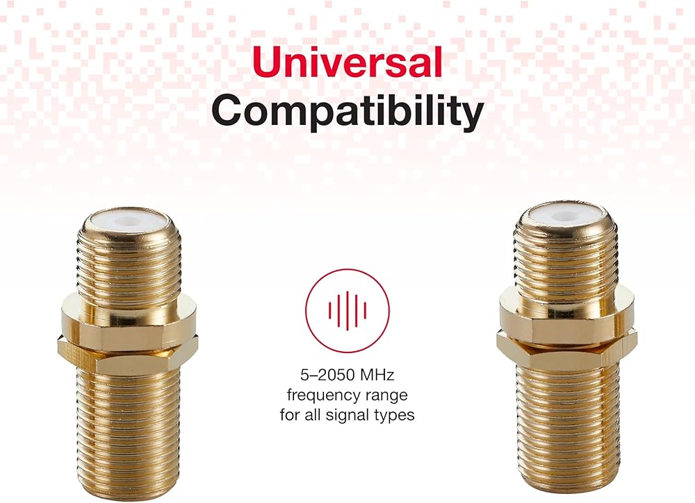 Crafted with precision, these coaxial cable connectors boast a 24K gold-plated construction that not only ensures a quality, corrosion-resistant connection but also enhances signal transfer for a clearer picture and sound. The universal compatibility of our connectors means they're perfect for any coaxial cable extender needs—whether you're connecting outdoor coaxial cables or looking for a flexible coaxial cable solution indoors. The broad frequency range of 5–2050 MHz supports all signal types, making this coupler a versatile tool for both high speed coaxial cable needs and cable TV coaxial cable requirements.