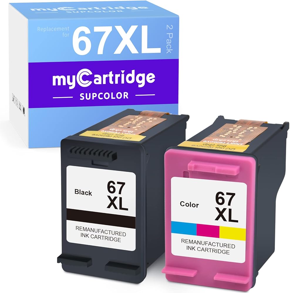 myCartridge SUPCOLOR Remanufactured Ink Cartridge Replacement for HP 67XL 67 XL 67XXL to use with DeskJet 2755 2722 2725 Envy 6055 6052 Envy Pro 6455 6458 DeskJet Plus 4155(Black, Tri-Color, 2-Pack)