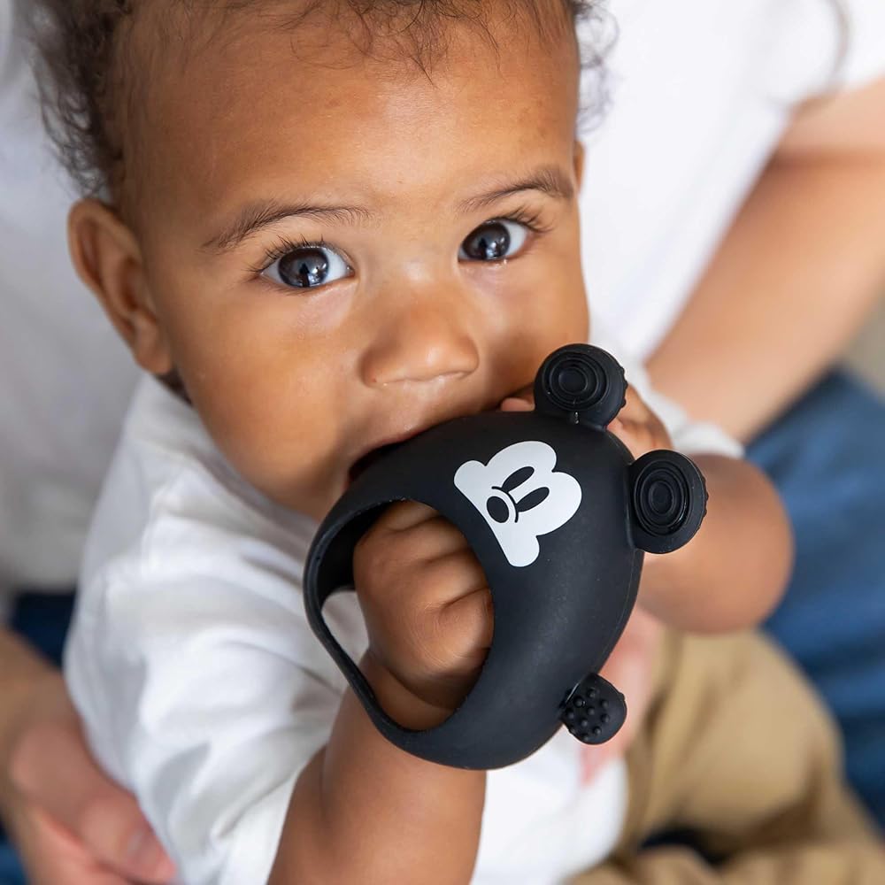 Offer your little Hunny relief from growing pains with Bumkins' Un-droppable Silicone Mitten Teether. Winnie the Pooh Teether is made from 100-percent food-safe platinum LFGB silicone, it's flexible and gentle enough when your baby wants soft pressure on their gums. Easy for little hands to grip, allowing babies to hold onto as they gnaw away aches from emerging teeth, while also developing motor skills. Teething toys offer tactile stimulation and promote oral exploration, aiding in sensory and oral development. Textures on the teether massage gums while encouraging babies to explore different sensations with their mouths. Chewing on these toys helps strengthen jaw muscles and supports the emergence of teeth. Place in a freezer to chill for added relief.