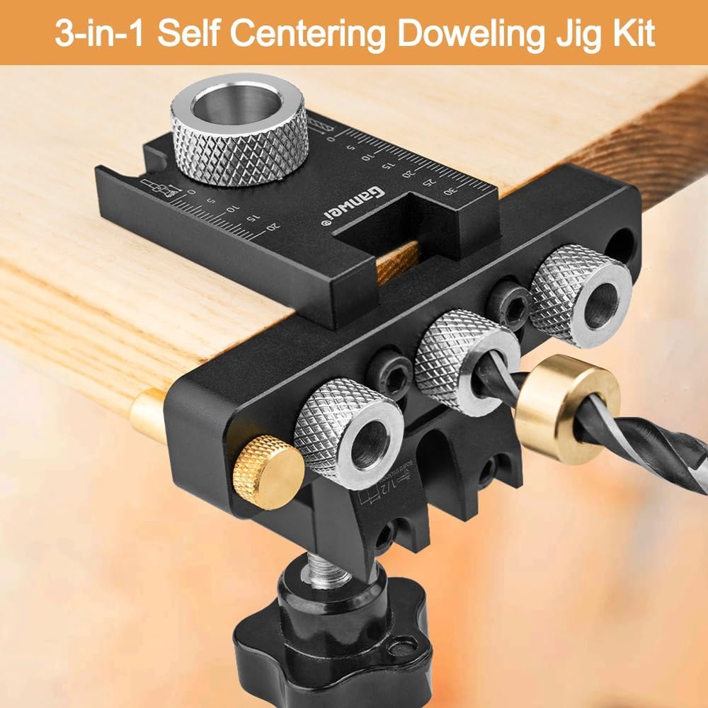 [ 3-in-1 Self Centering Doweling Jig Kit ] Equipped with 8mm, 10mm, and 15mm (5/16", 3/8", 19/32")drill bits to meet various hole diameter requirements.