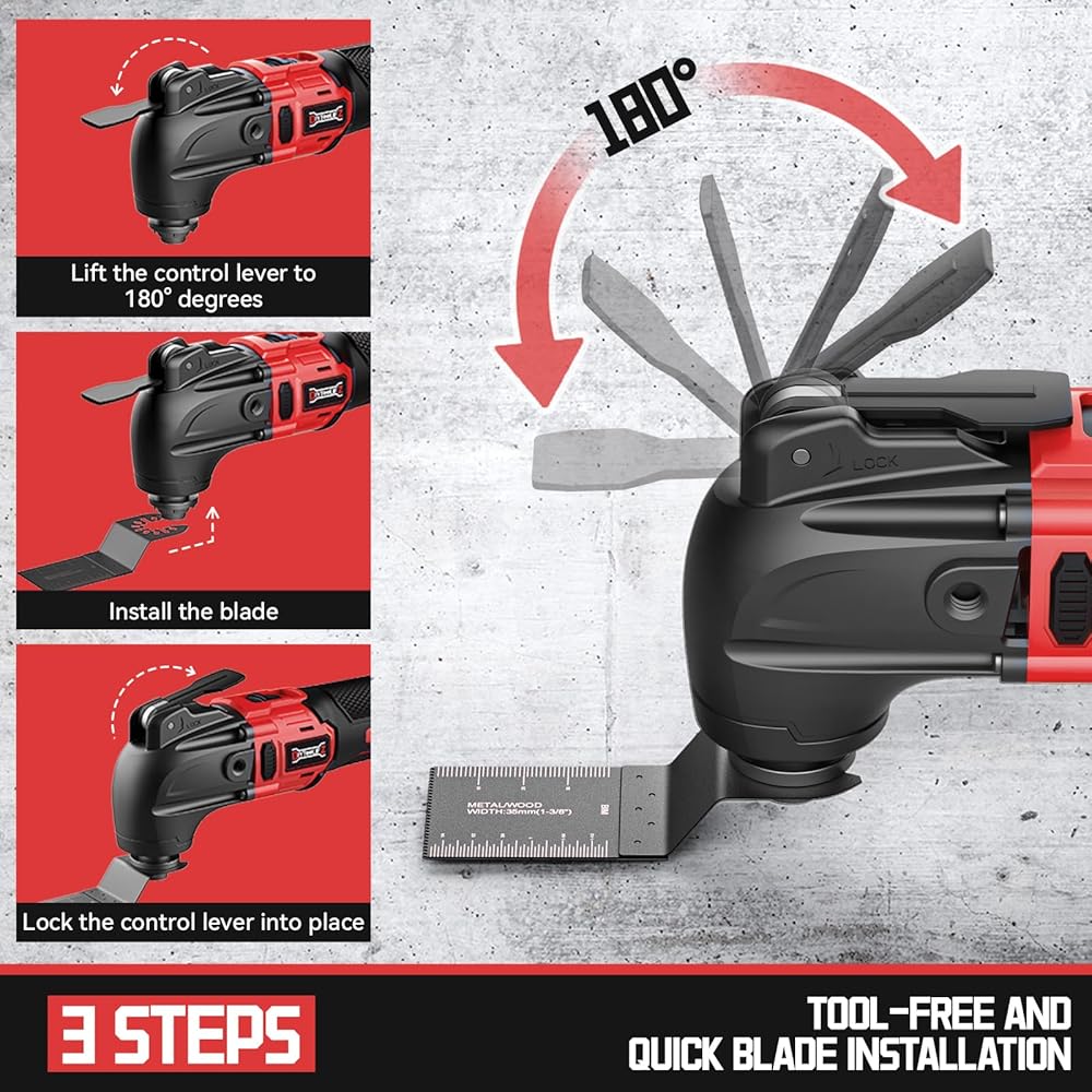 【Portable and Cordless】With this cordless oscillating tool which is designed for Milwaukee 18V battery (Battery not Included), you can experience the freedom of working anytime and anywhere, without the hassle of tangled cords and limited mobility.