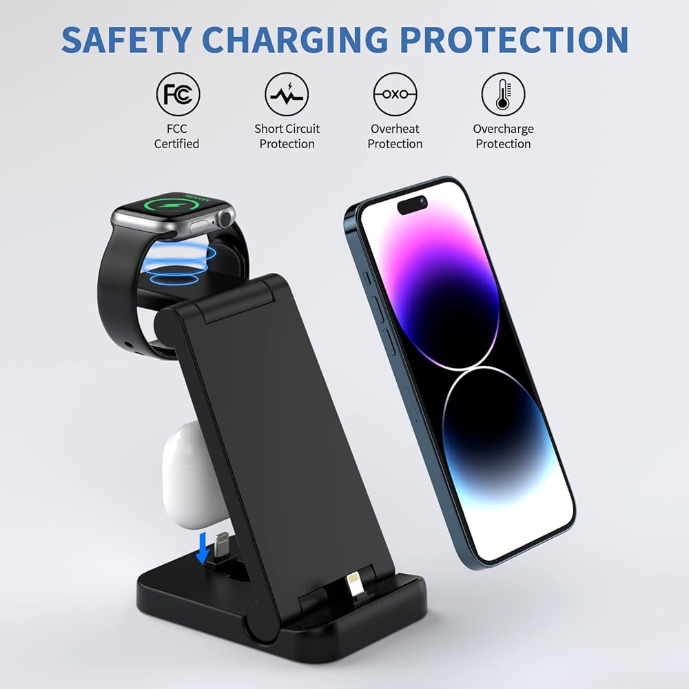 【Universal Compatibility】Our charging station for multiple devices is compatible with all the iPhone, iWatch, and AirPods series. It is compatible with iPhone 14/14 Pro/14 Pro Max/13/13 Pro/13 Pro Max/13 mini/12/12 Pro/12 Pro Max/12 mini/11/11 Pro/11 Pro Max/XS/XR/XS MAX/X/8/8Plus/7/7s/6/6s /5/5s, Apple Watch 8/7/6/5/4/3/2/and AirPods 1/2/3/Pro (Note: only for Apple device).