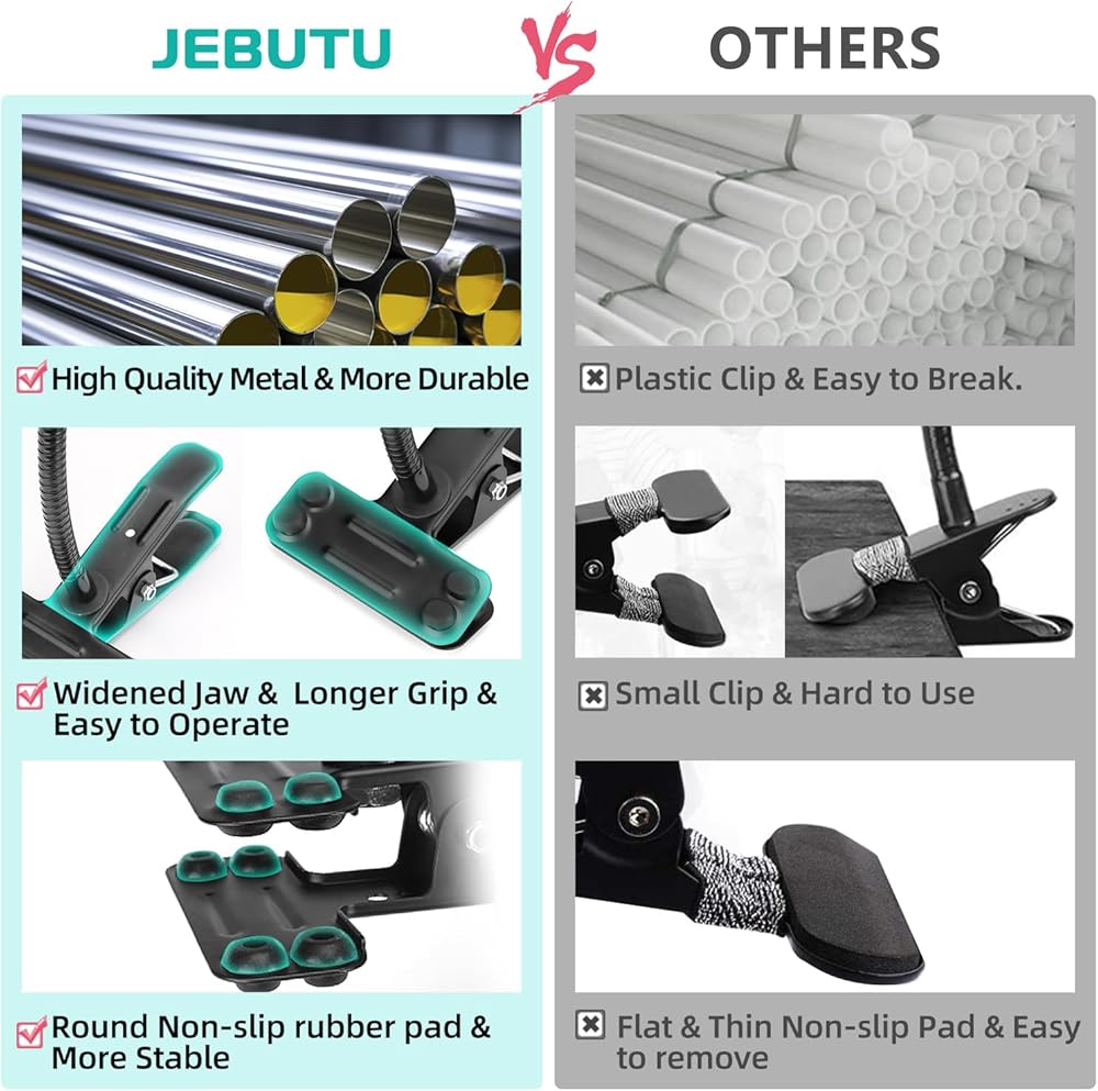 ✨ Flexible Adjustable Angle & Height✨ JEBUTU desk mount stand allows for a flexible range of motion, providing a free angle for better live streaming. The webcam stand can extend to 25in / 63cm to adjust the height for the best shooting range.
