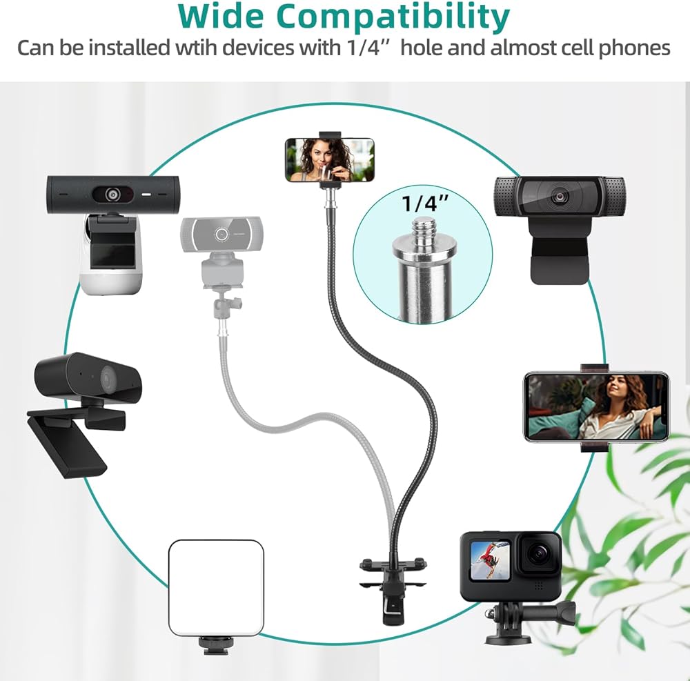 ✨ Wide Compatibility✨ ❶ JEBUTU quality-made gooseneck stand is designed with 1/4” screw, compatible with most webcams and almost cell phones. ❷ This gooseneck stand is suitable for logitech webcam BRIO 4K C960 C920 C920S C922 C922x C925e C930 C930e C615, NexiGo N60, etc (expect for Logitech Webcam C270 C310), and other devices with the standard 1/4" screw hole.
