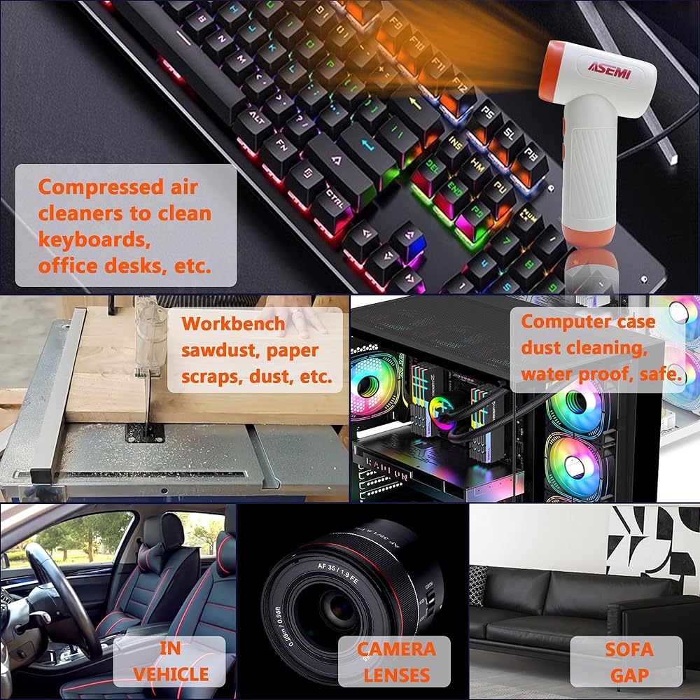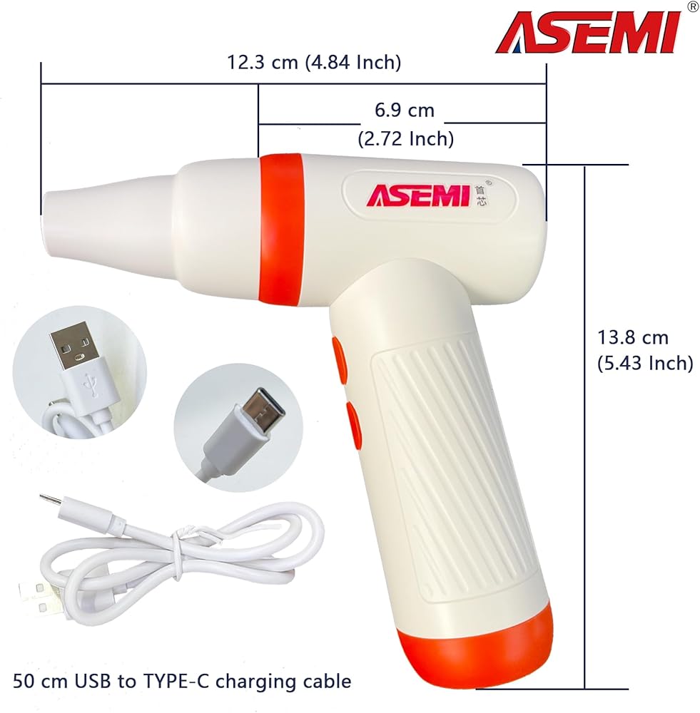 ASEMI High-Speed Turbo Air Duster, Multifunctional Portable Rechargeable USB,100000RPM 4.5h Endurance Hand Held Duster, Mini Car Home Cleaning Camping Tools,Flashlight with LED Bulb Outdoor (ORANGE)