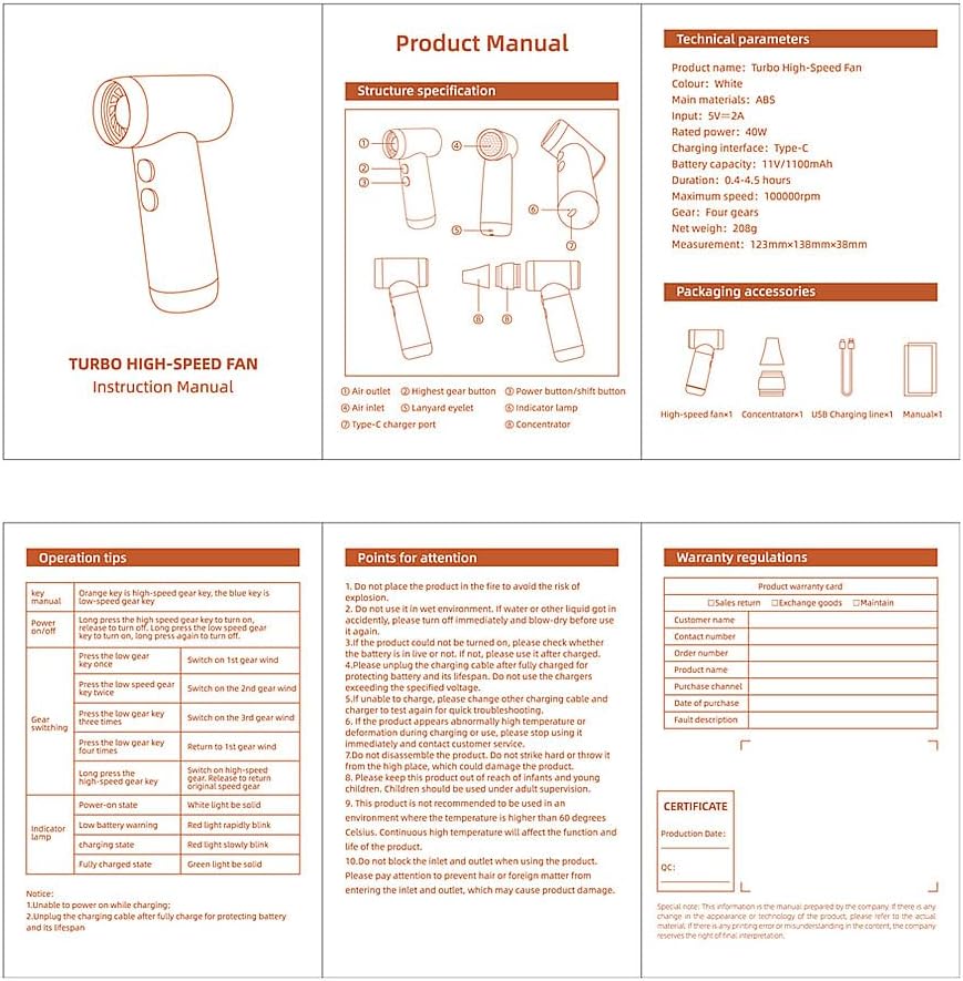 ※ 【Fast charging, portable】Small and mini, portable, only half the size of a mobile phone, no pressure to put it in a bag or pocket. Only 30 minutes of USB charging, the highest wind speed can be used for only 30 minutes when going out, and the lowest wind speed can be used for 4-5 hours.