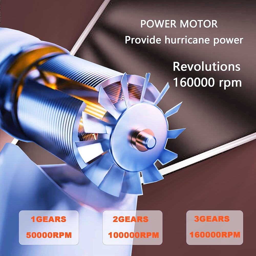 ※ 【One Touch Air Duster】One-touch opening, high-speed high-quality motor Revolutions 100000 rpm, turbine strong wind gathering. Three-stage pressurized air guide system, smart chip safety protection.