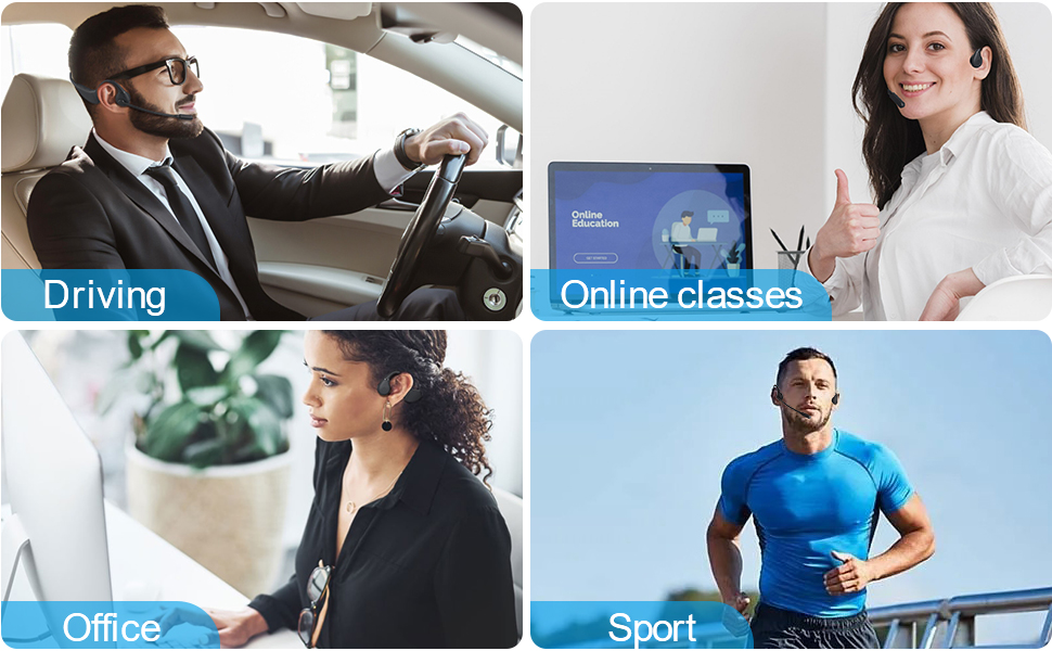 🎶【True Bone Conduction Technology & Multi-Device Connection】Our bluetooth headset with microphone transmits sound through the bones of the face for clear sound reproduction in noisy environments. It's helpful for those who have sensitive ears or hearing difficulties. The headset can be connected to two devices at the same time, offer convenient switching capabilities, and doesn't miss any incoming calls.