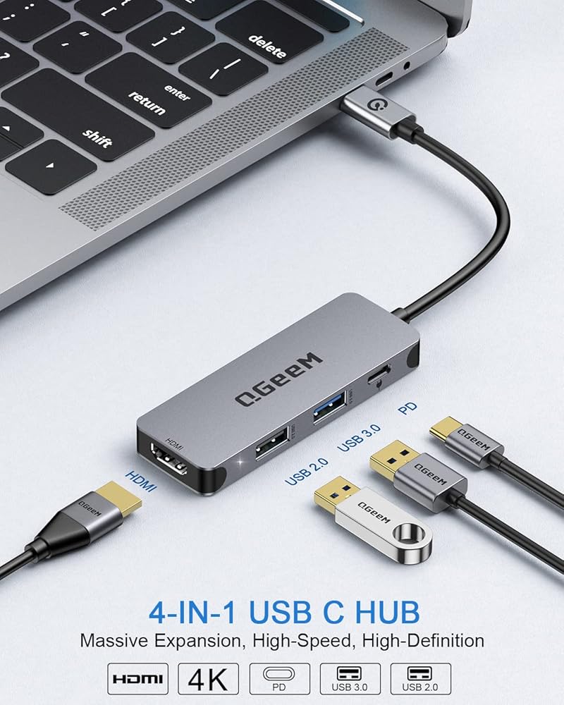 QGeeM Portable USB C Adapter: Unibody aluminum alloy exterior, ionized finis, high-quality manufacturing and durable, protection to prevent interfere with wireless devices, lightweight and appropriate size to carry in your laptop bag when traveling. this adapter can save your desk space and expand your devices connectivity
